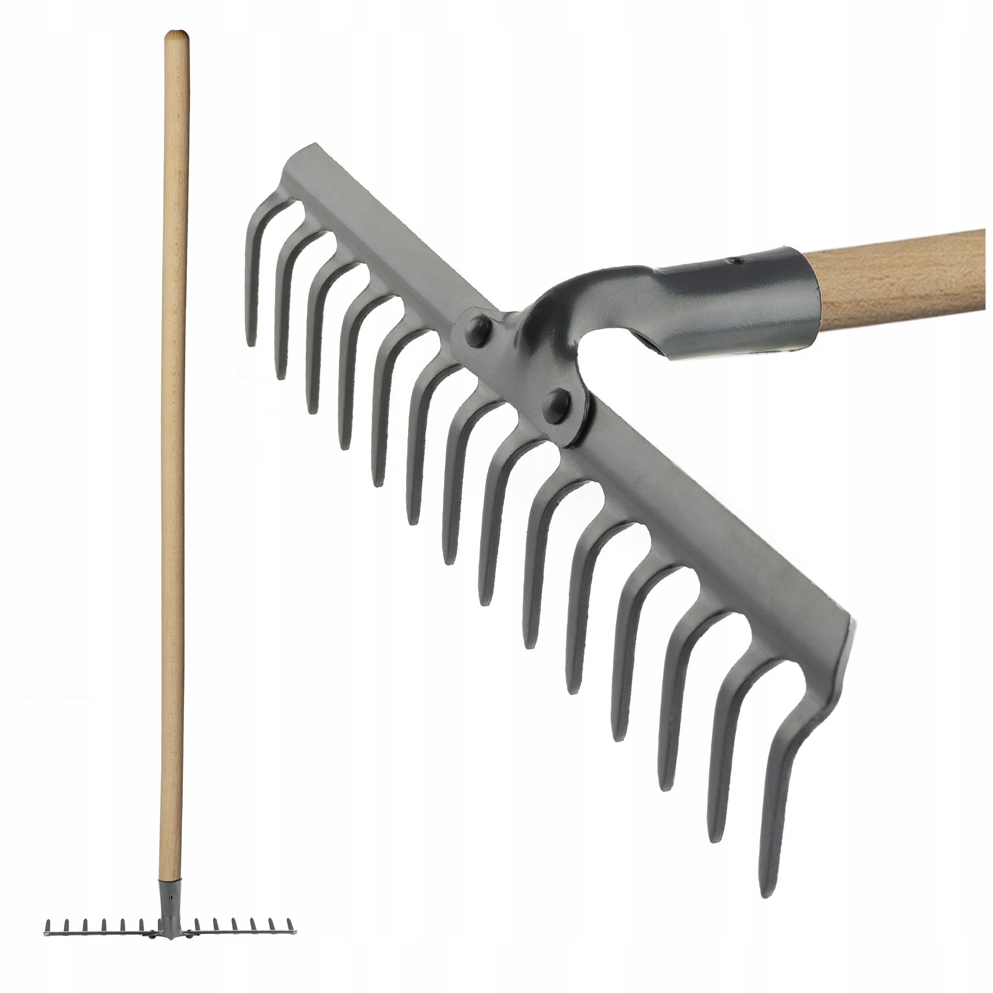 Наші граблі були спеціально розроблені для забезпечення ефективного та навіть збору трави або каменів. Їх металеві зуби стійкі до корозії та ударів. Завдяки цьому вони є ідеальним інструментом для інтенсивного використання в сільському господарстві та садівництві, який буде служити протягом багатьох сезонів.