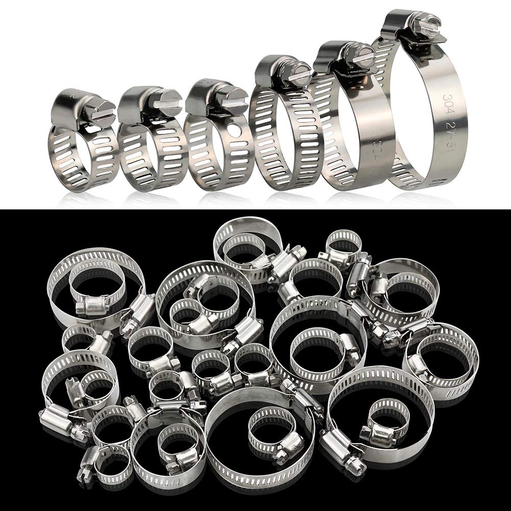 - ✔【Широкий діапазон регулювання розміру】- Хомути з нержавіючої сталі містять сталеві шлангові хомути 6 різних діаметрів для адаптації до різних шлангів: 6-12 мм, 10-16 мм, 13-19 мм, 16-25 мм, 21-38 мм, 27-51 мм.