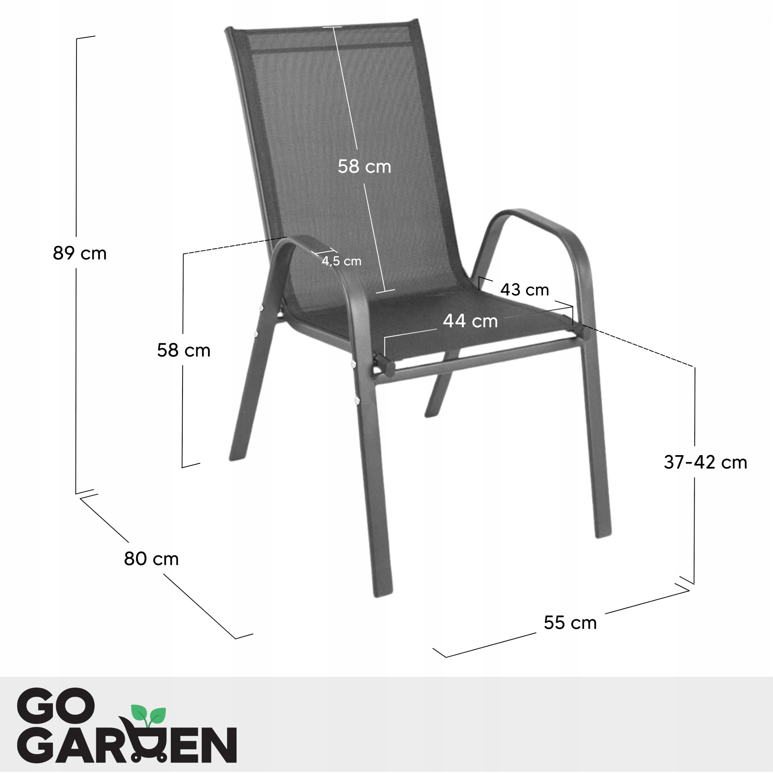 стілець не потребує складного обслуговування. Щоб утримати їх у хорошому стані, достатньо регулярно очистити тканину та протерти сталеву конструкцію вологою тканиною. Варто зберігати їх у сухому місці взимку, щоб забезпечити довговічність продукту.
