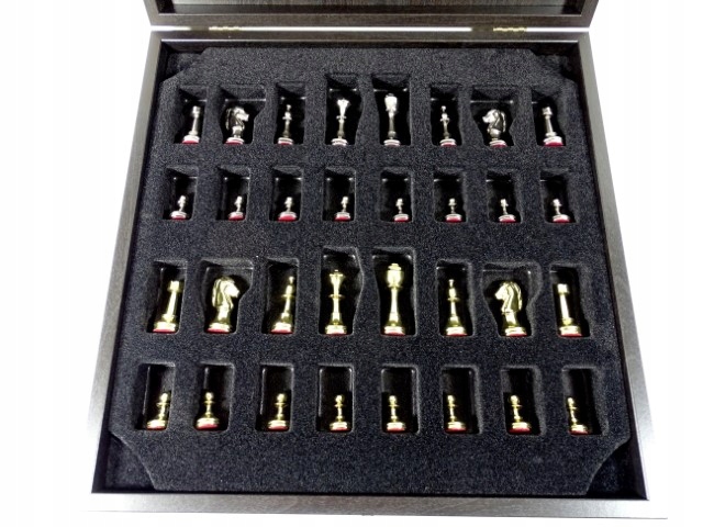Шахові фігури упаковані в красиву розкішну дерев'яну коробку. Усередині є ретельно виготовлений молдинг для розміщення та безпечного зберігання фігурок.