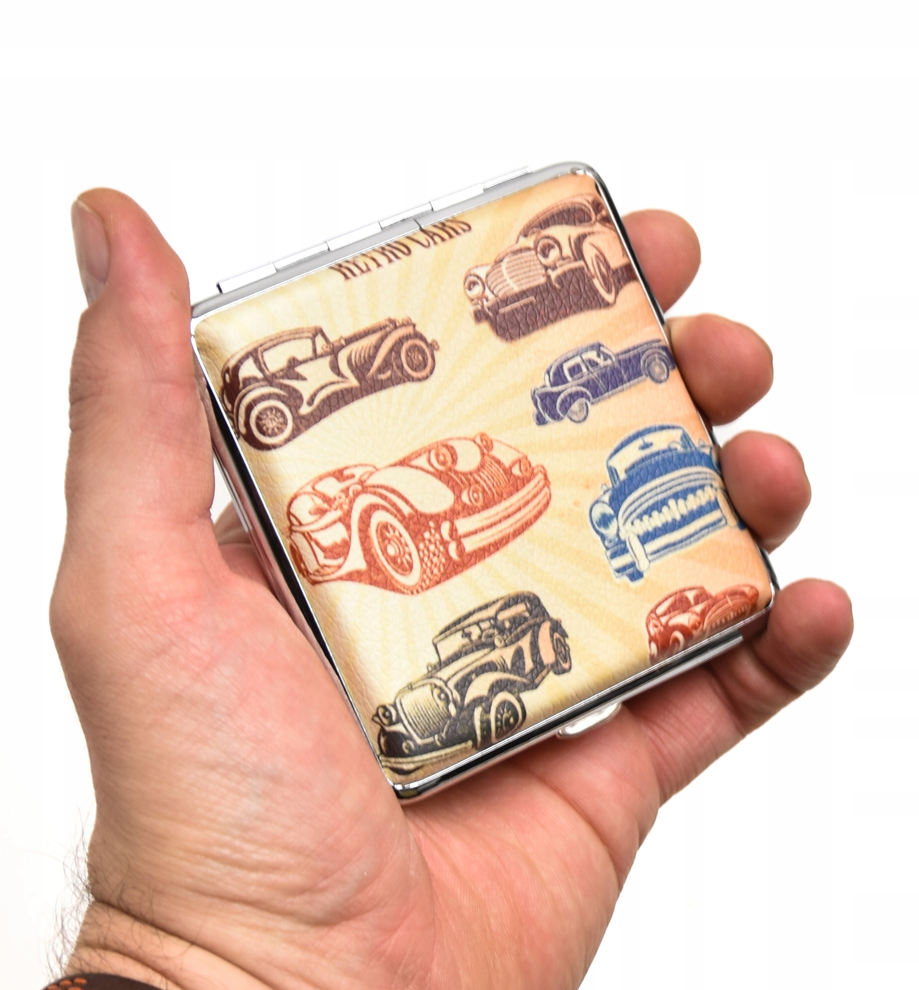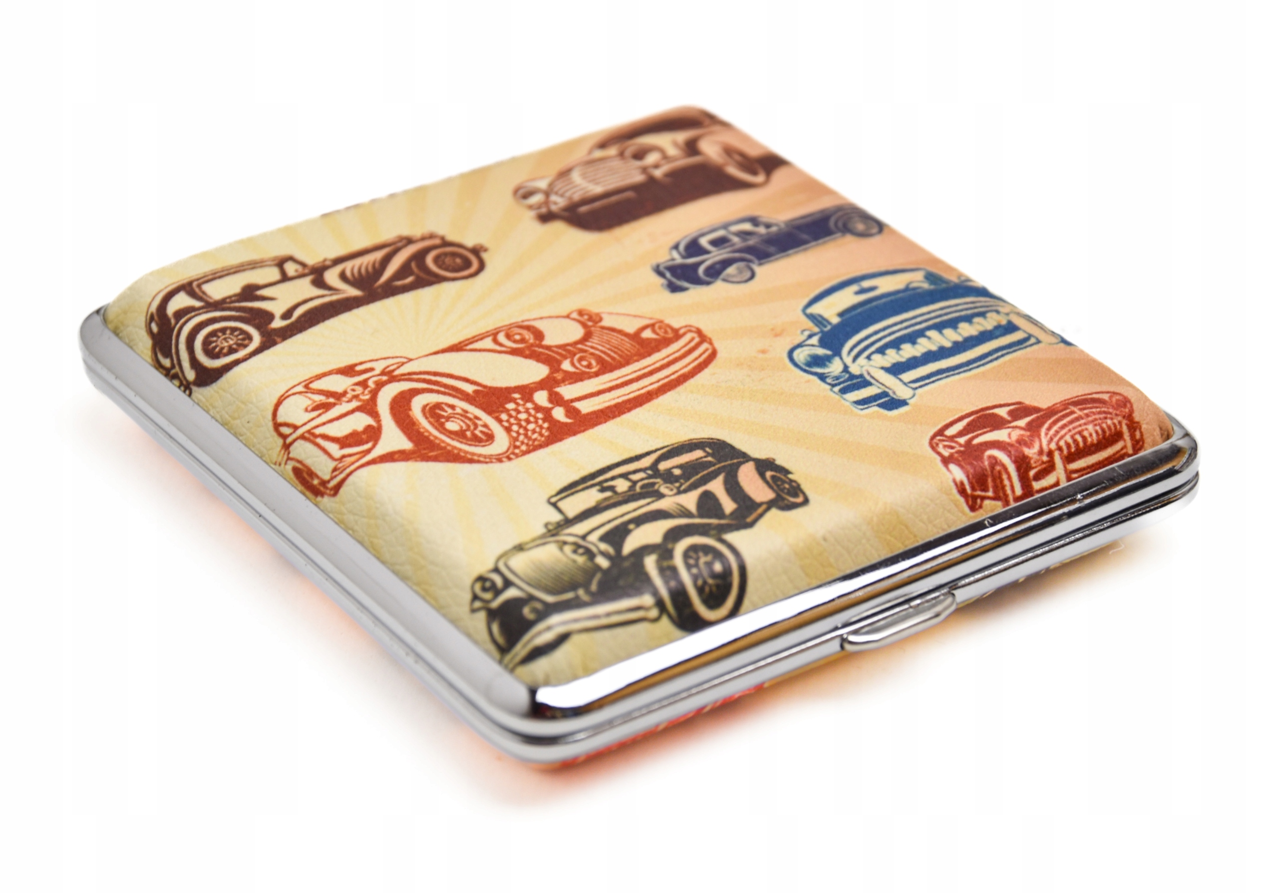 Металевий портсигар, обтягнутий екошкірою, на тему автомобіля