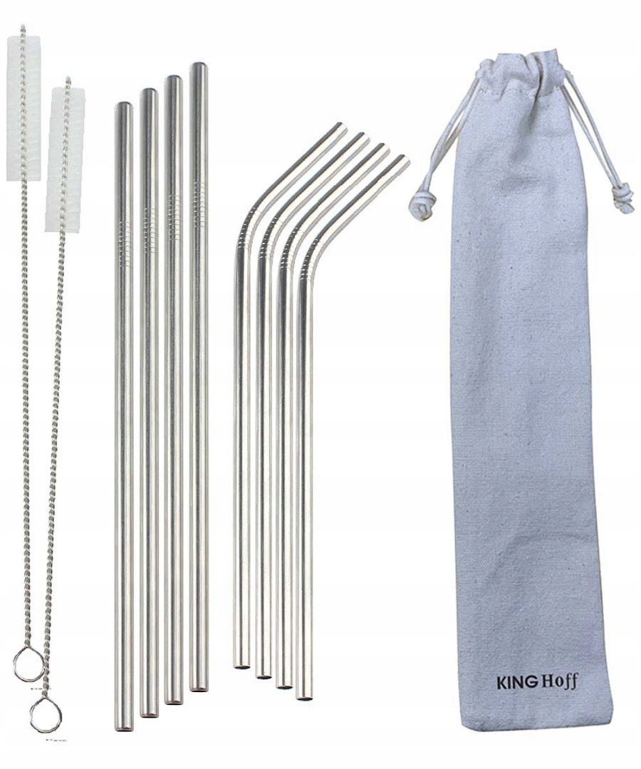 Металеві соломинки для напоїв KINGHOFF 8шт. + ФУТЛЯР