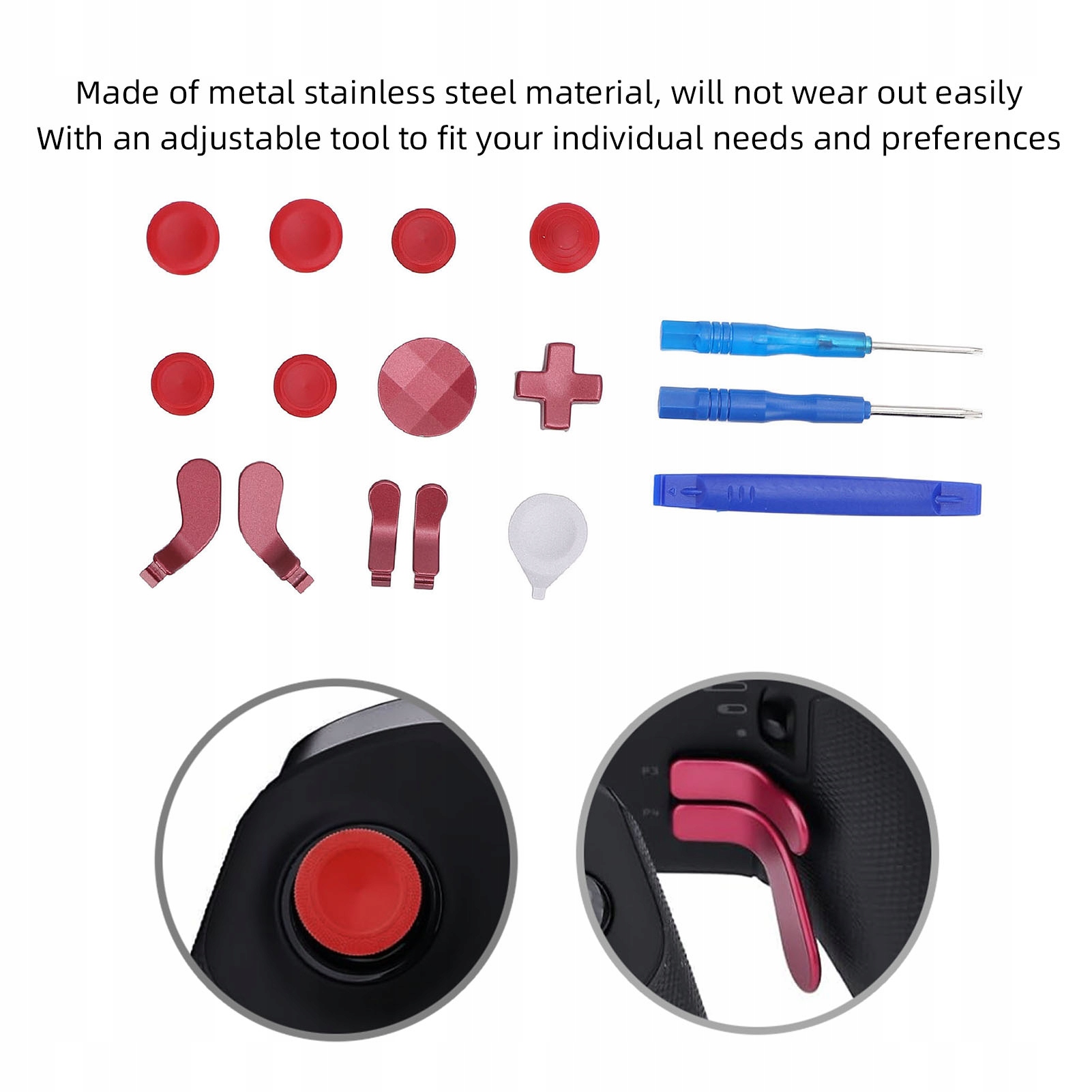 1. Висока сумісність: Ці аксесуари для контролерів ігор призначені для елітного бездротового контролера з 2 серії (модель 1797) та елітного ядра бездротового контролера від 2 серії (Biay). Він не відповідає одній елітній серії 1 (модель 1698) (модель 1698). Гнучкість та унікальність: всі смуги, абревіатури та суб -вдосконалення D можуть бути підібрані, що робить заміну використаних деталей та покращує досвід гри. Унікальний вигляд та розтороп, який змусить ваш контролер виділятися. Легка заміна: простий і прикріплений для складання нашого набору змінних стрижнів до контролера. Виберіть свої улюблені бруски, не відкриваючи контролер, оскільки він автоматично підходить як магніт і не падає, якщо його навмисно витягують. Вміст упаковки: Цей набір деталей ремонту контролера містить 6 замінних металевих брусків, 4 абревіатури, 2 прокладки D, 1 інструмент срібла для регулювання палиці, транспортної валізи, 2 викрутки та 1 стрижня для підриву. Зробіть свій ремонт прямо. Удосконалення ігрових відчуттів: Аттігально замініть використані смуги управління за допомогою нашого набору, саме адаптації до контролера ігор, забезпечуючи великі враження та почуття в іграх. Виготовлений з металу з нержавіючої сталі, витримує.
