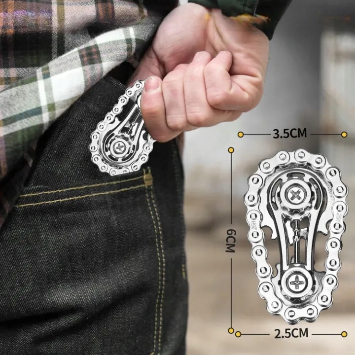 Цей багатофункціональний інструмент може обертатися між вашими пальцями, рухати рукою або кататися по столу. Під час прокатки буде чути заспокійливий звук ланцюжка. Тактильна стимуляція та ритмічні рухи можуть допомогти зняти тривогу та зосередитися на роботі, навчанні чи інших видах діяльності.