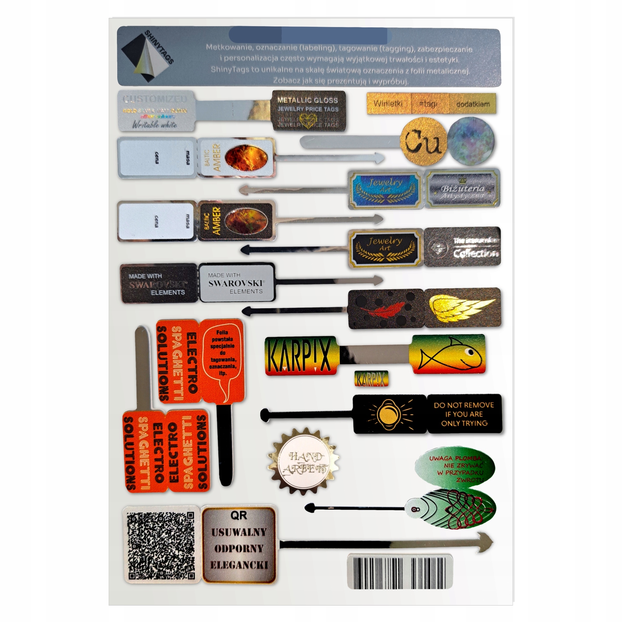 Предметом пропозиції є готові ювелірні бирки зі срібла, дзеркала, металевої фольги з написом на білому тлі: