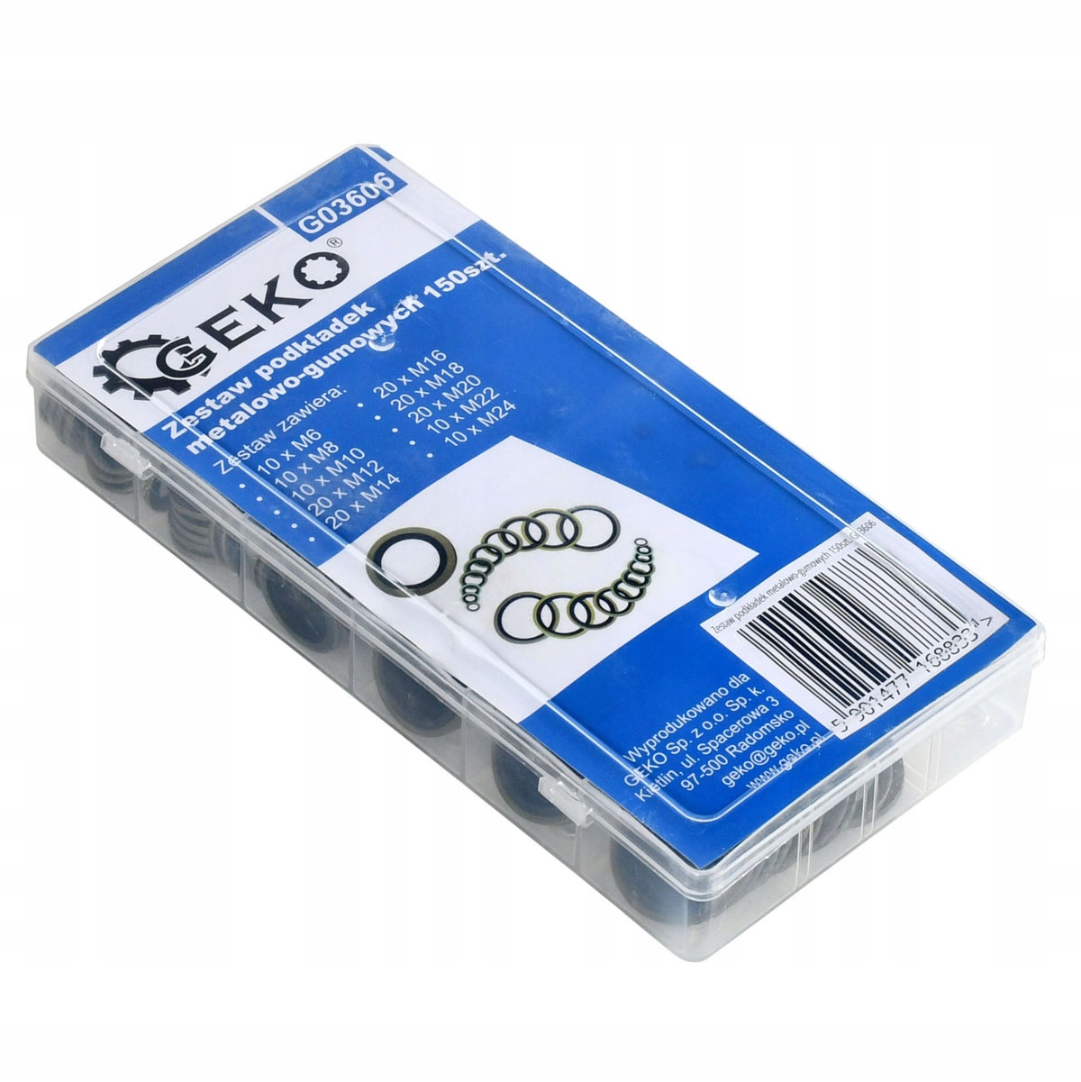 набір металевих прокладок з гумою, розміром від M6 до M24.