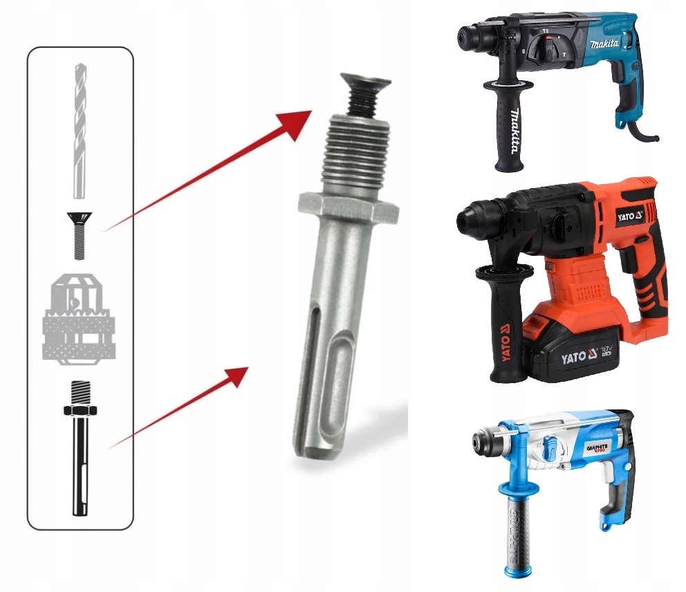 Тримач має стандартне кріплення 1/2" - 20 UNF - підходить для більшості ударних дрилів або використання адаптера з перфораторами