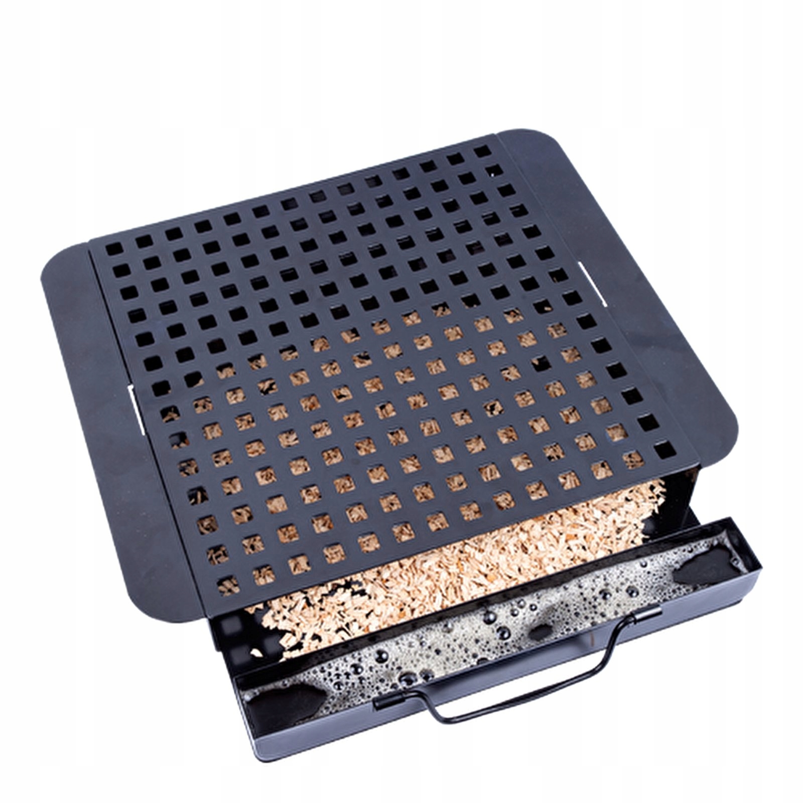 забезпечує унікальний смак та аромат посуду на грилі та копчених страв. Простий у використанні. Все, що вам потрібно зробити, - це налити чіпси пива, вина чи води. Спеціальні отвори забезпечують ідеальне розподіл диму та запобігання спалюванню мікросхем.