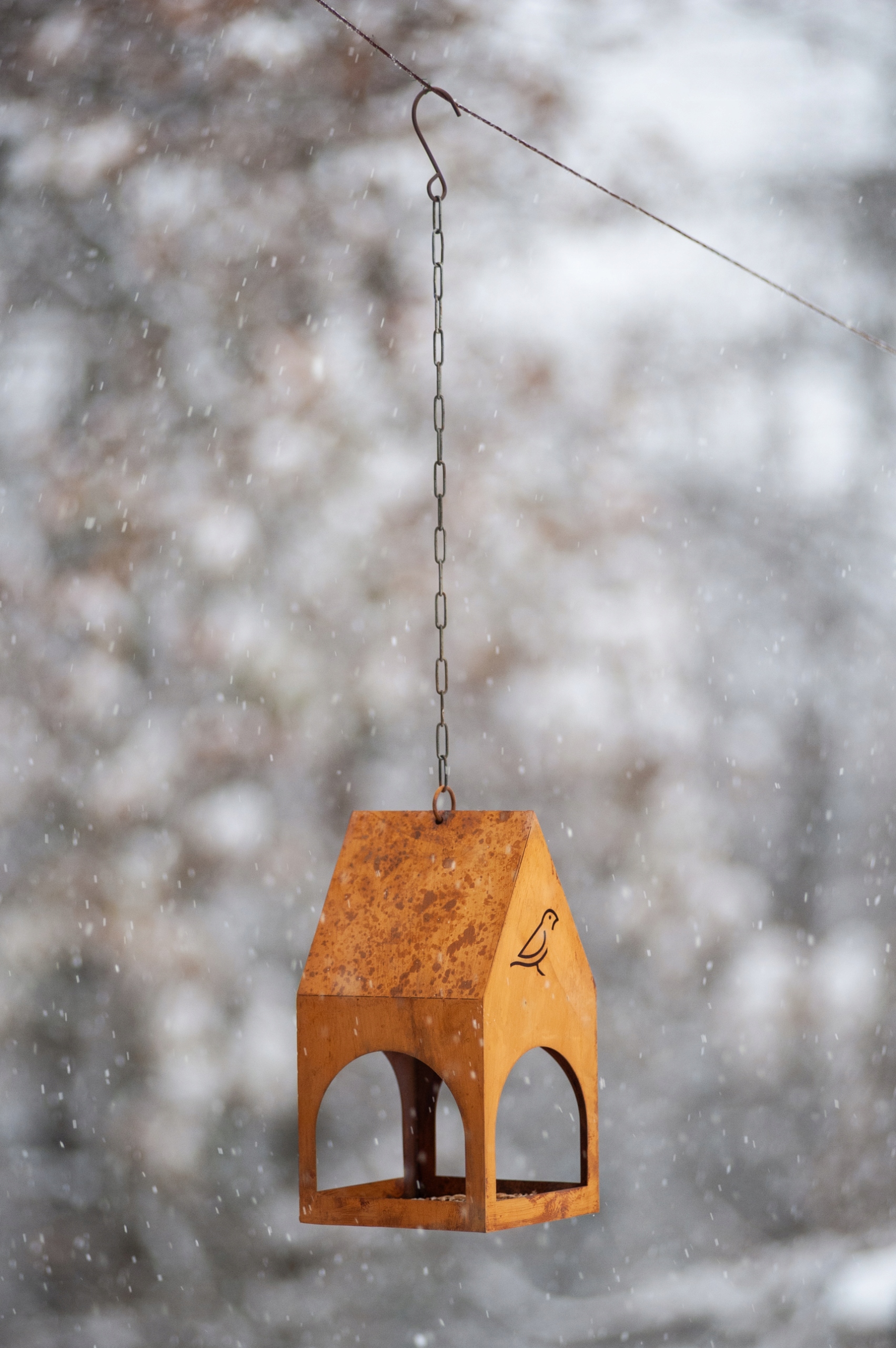 Металевий будиночок, Годівниця для птахів, Сарай на ланцюгу, Ефект Кортена