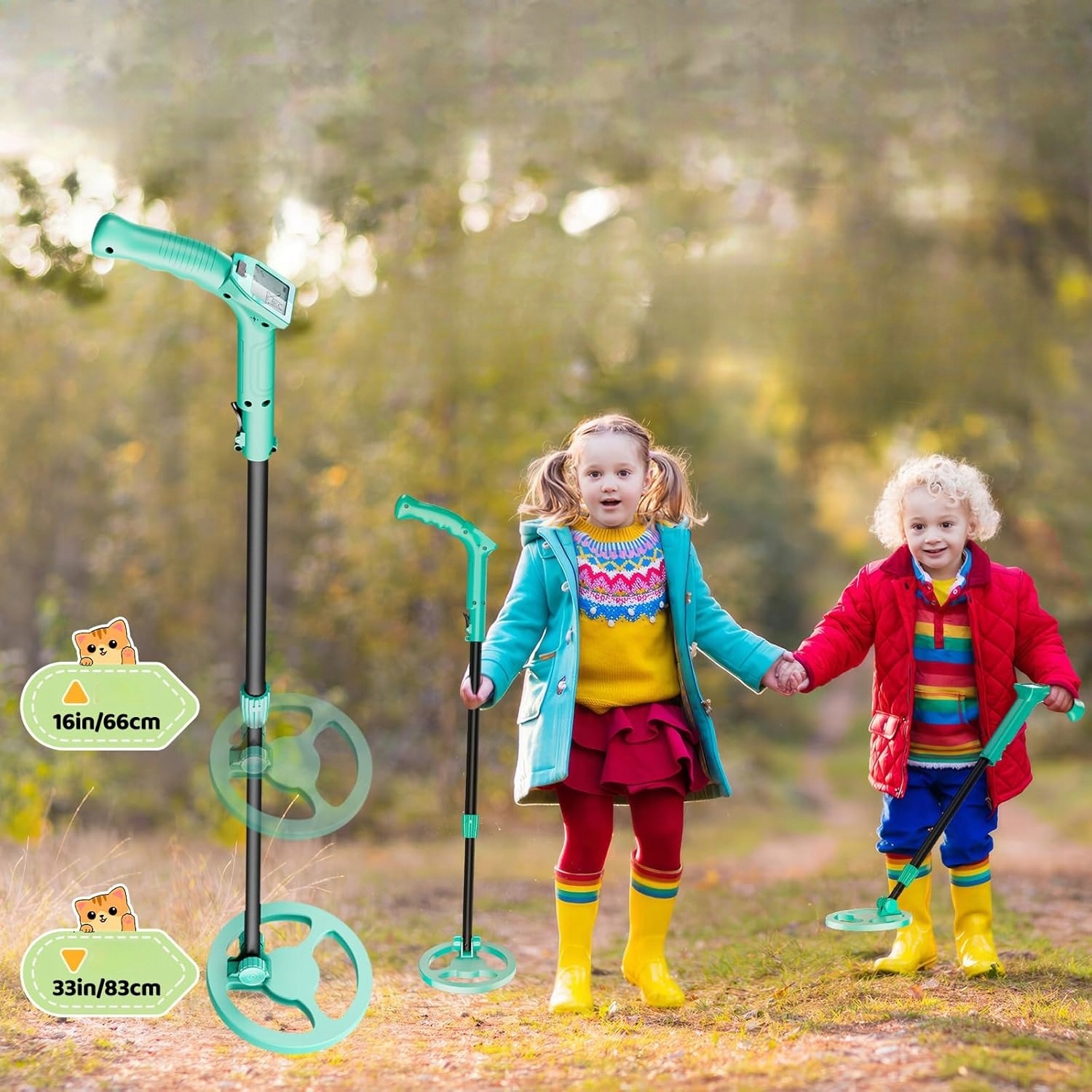 - ✔ Протока цього невеликого металевого детектора регулюється в діапазоні від 16 до 33 дюймів (66-83 см) , завдяки якому він підходить для дітей різного віку та різного зростання.
