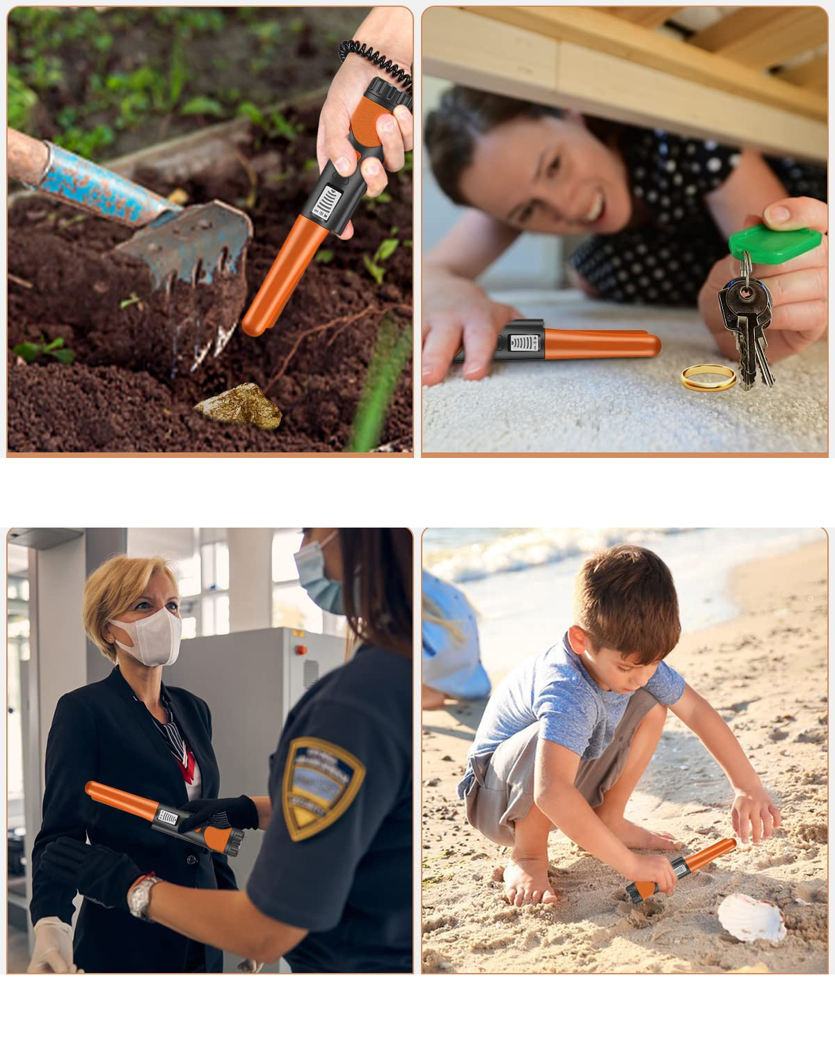 -hands до виявлення 360 градусів у всіх напрямках , цей зонд може ретельно виявити різні металеві предмети, придатні для різних зовнішніх середовища. Перемикання , простий у використанні та експлуатацію. Детектор акумулятор, а також відстань до металевого предмета. Частота хвиль встановлюється залежно від ситуації. Коли металошукач використовується ближче до скарбу, чим більша кількість світлових хвиль на світлодіодному дисплеї, тим швидше тривога. про воду, вологу або вологі умови. Ви можете взяти з собою водонепроникний металошукач, щоб виявити під водою та відкрити інші цікаві скарби під водою. (ПРИМІТКА: Не занурюйте головку детектора у воду на глибину більше 10 см.)
