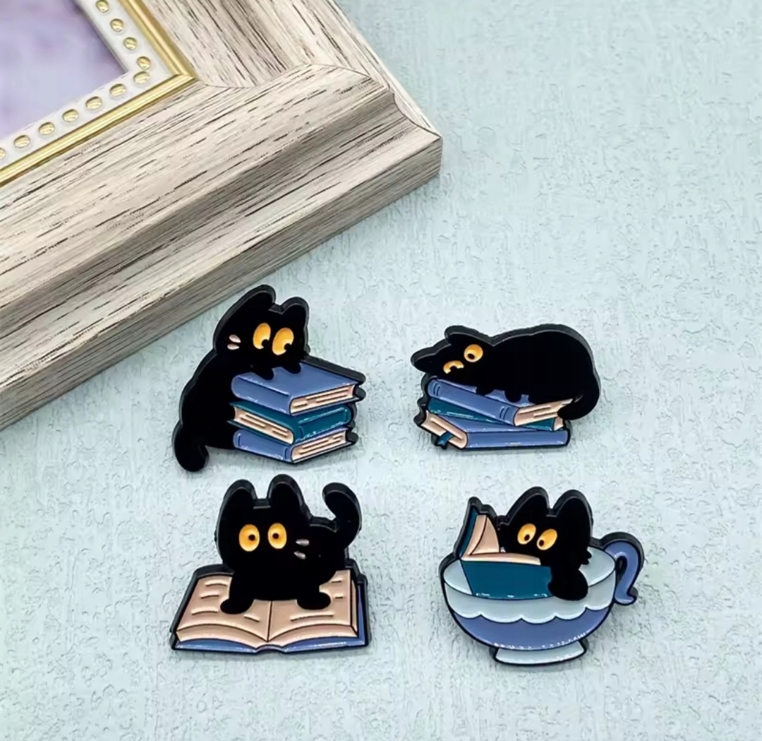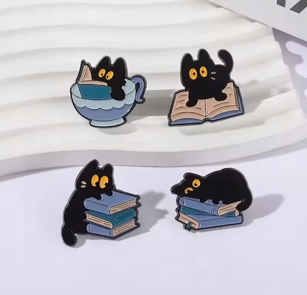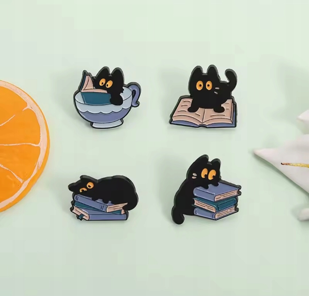 Металевий емальований бейдж - книга про кошенят чорного кота