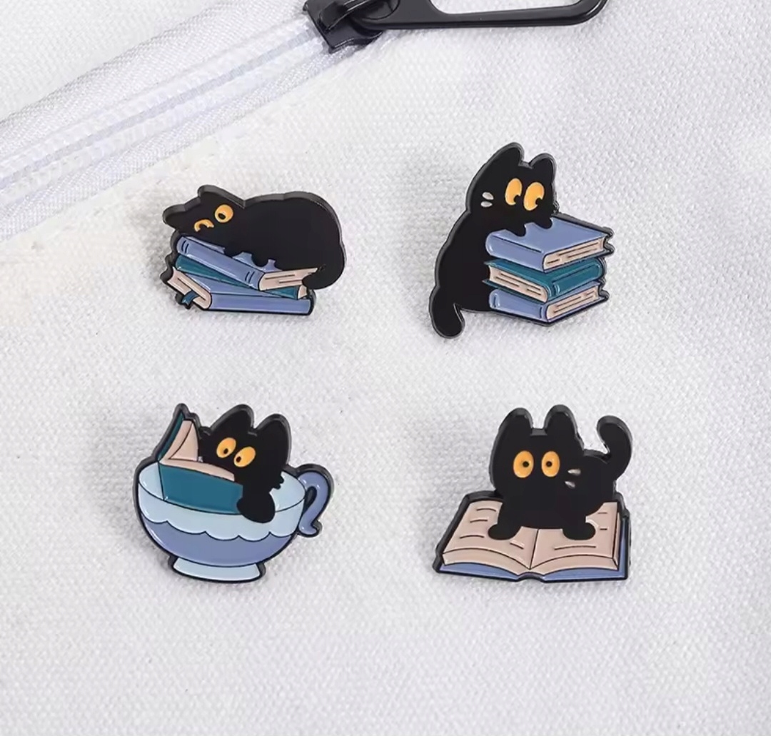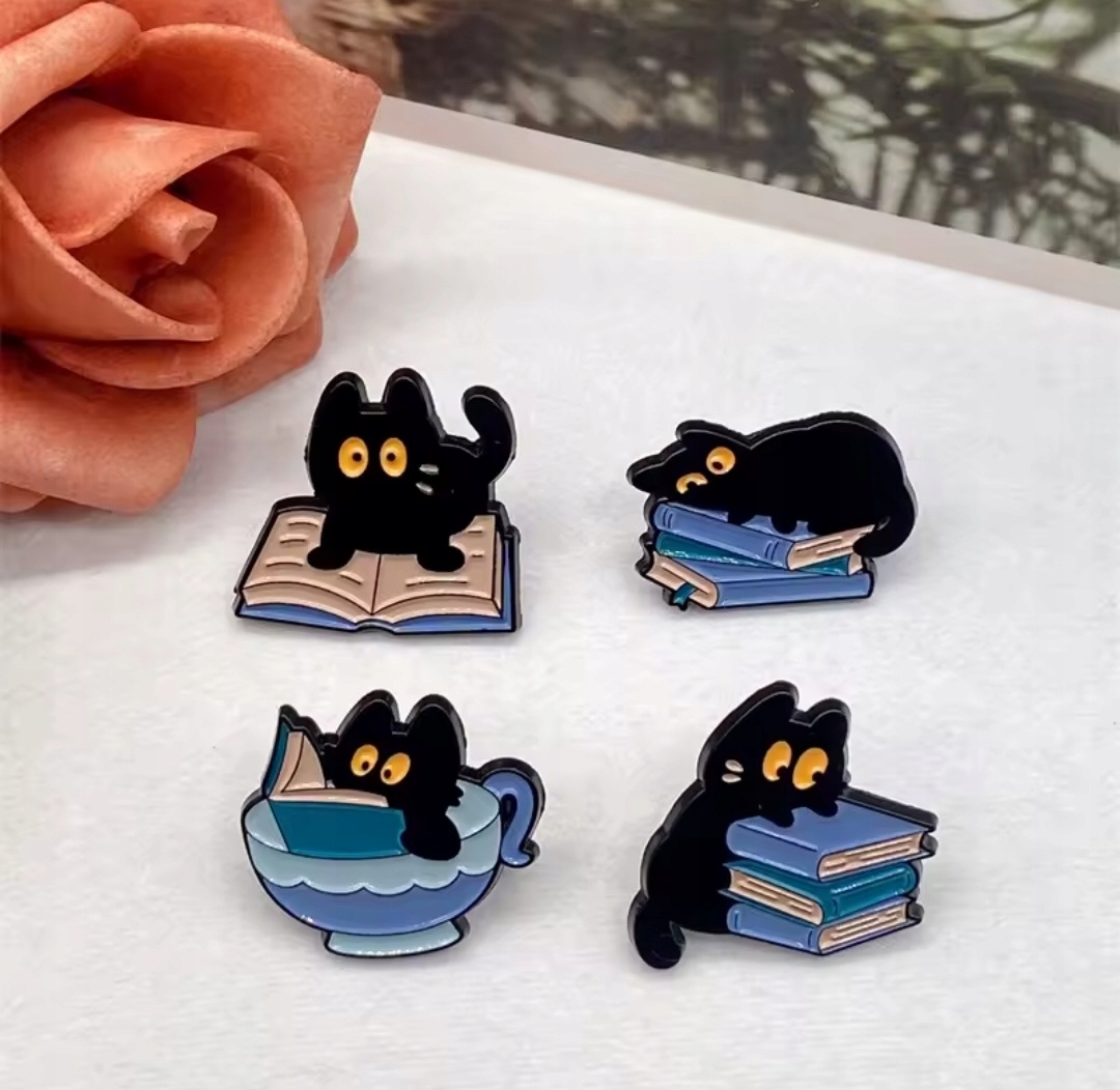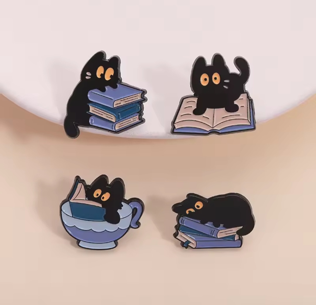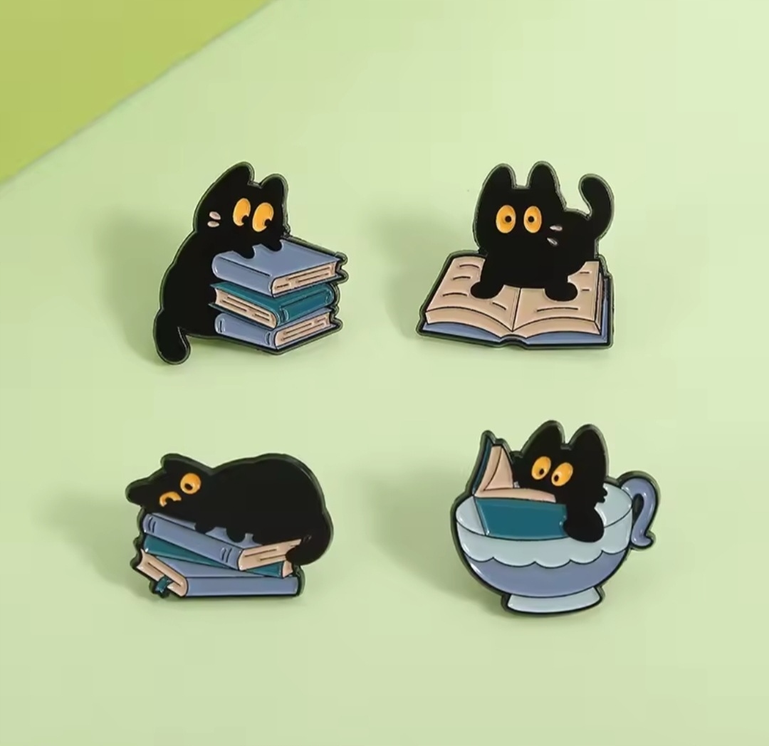 Металевий емальований бейдж - книга про кошенят чорного кота