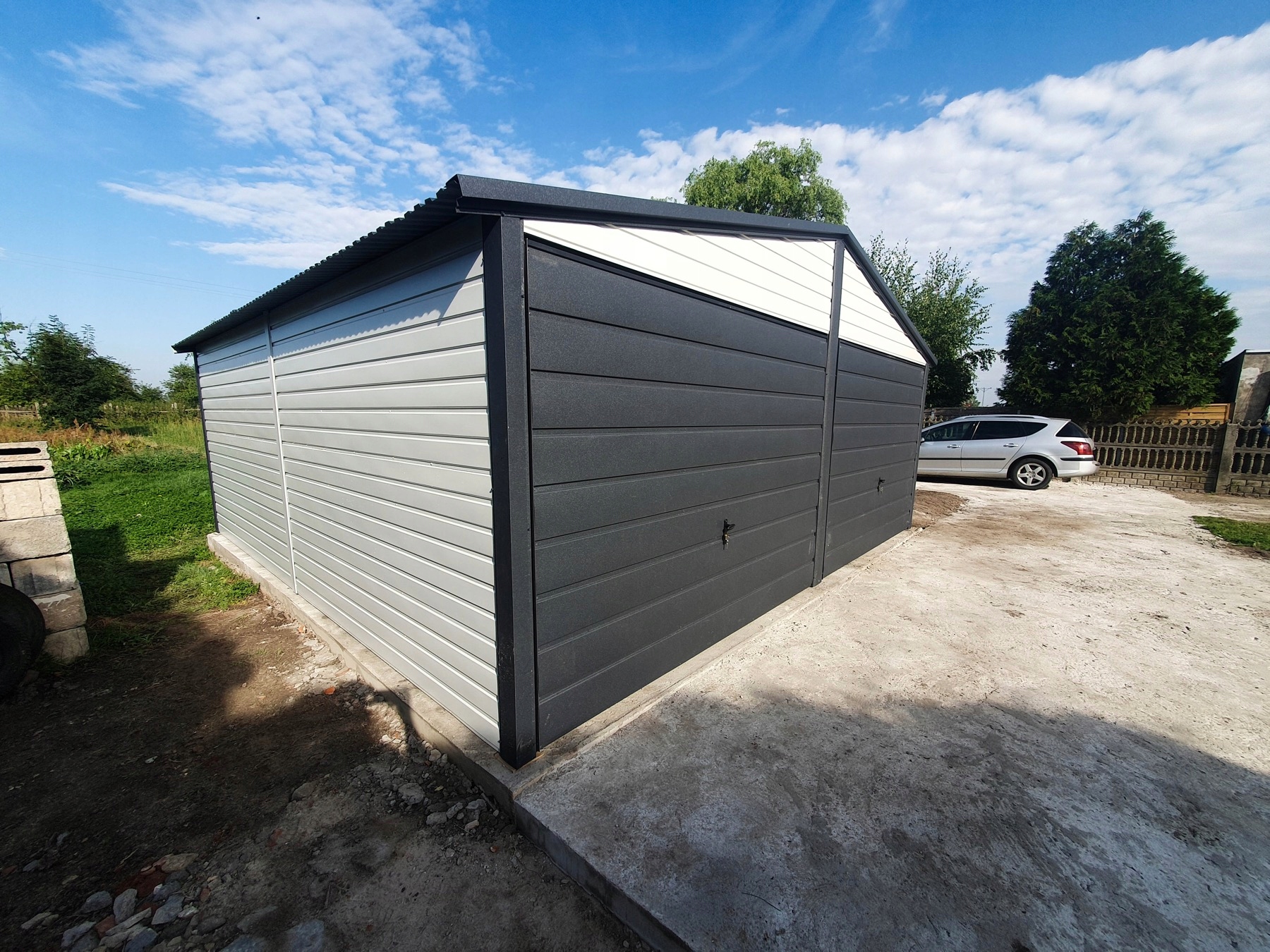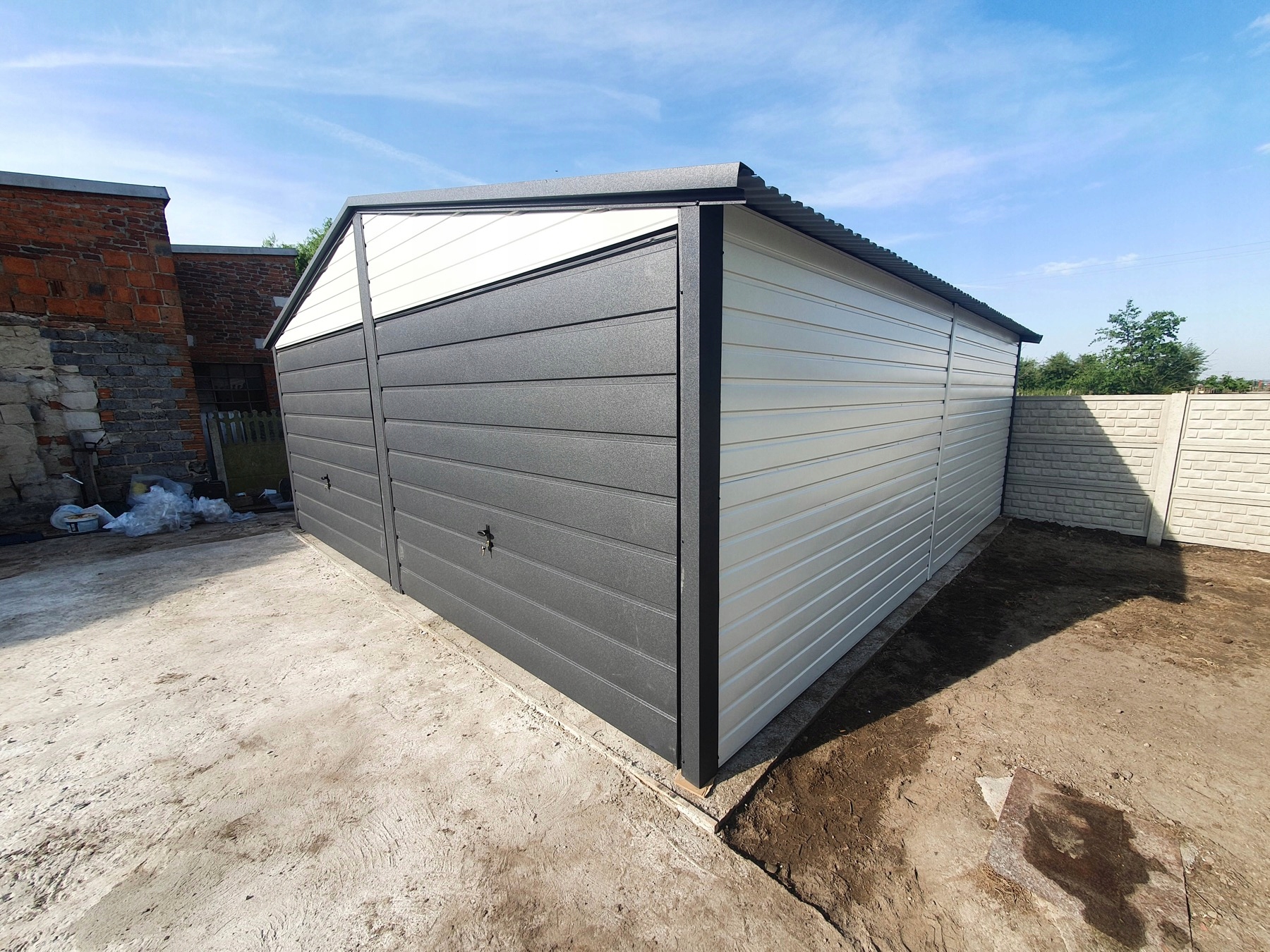 Металевий гараж 6х6 - 2х ворота - Антрацит + Білий - двосхилий дах