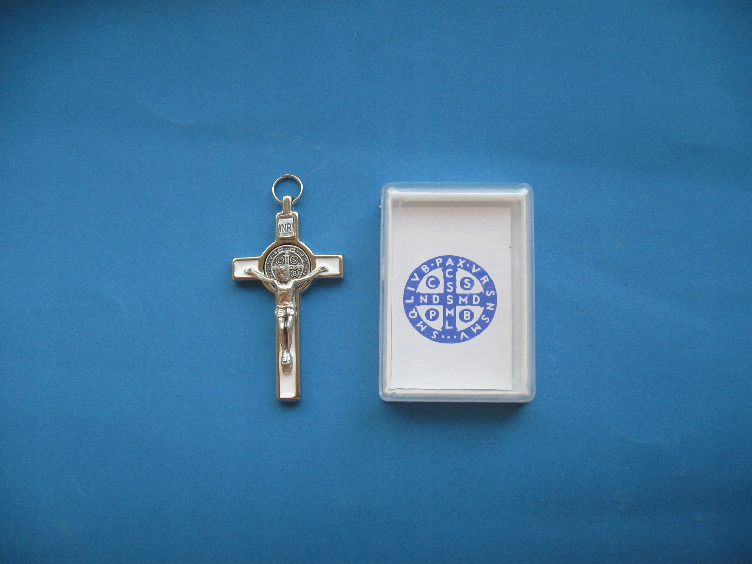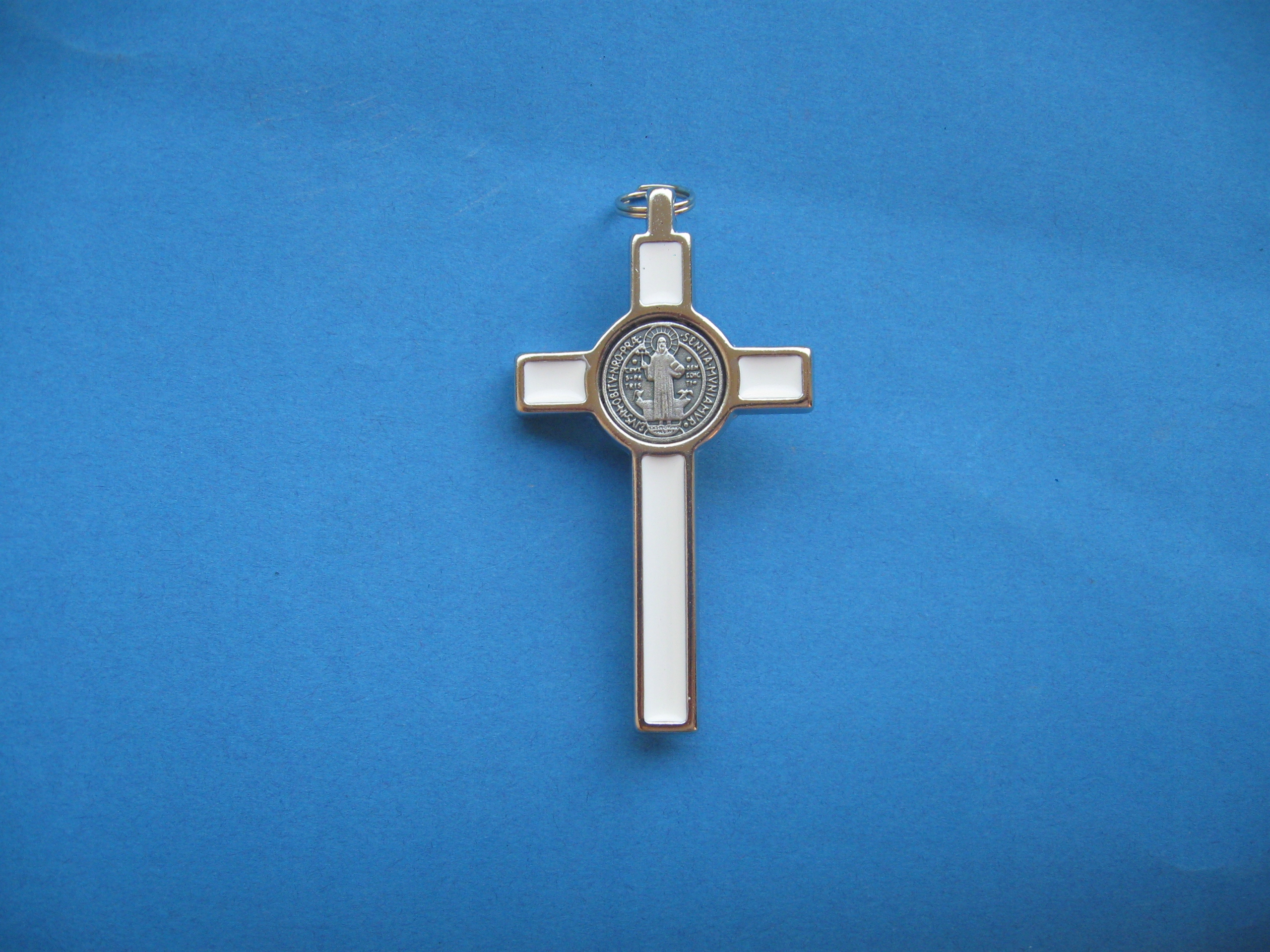 металевий хрест св. Бенедикта з барвистою начинкою. Бенедикт - католицький хрест, що містить написи та символи, пов’язані з святим. Бенедикт (спереду) та хрест з першими літерами слів від молитви до святого (назад). Він використовується приблизно з 17 століття. 4 Хрест святого Бенедикта - це одна з найпопулярніших прихильників з реальним екзорцизмом.