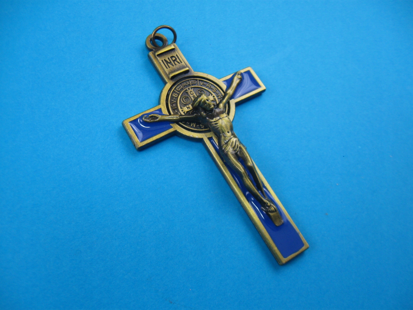Металевий хрест з медаллю святого Бенедикта синього