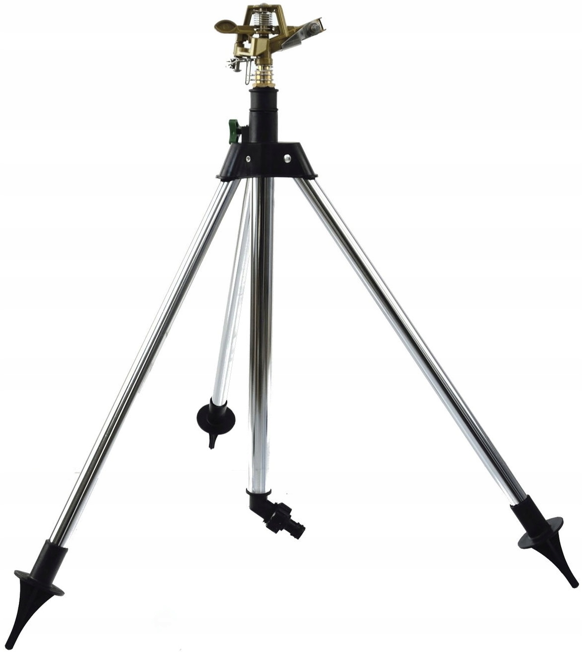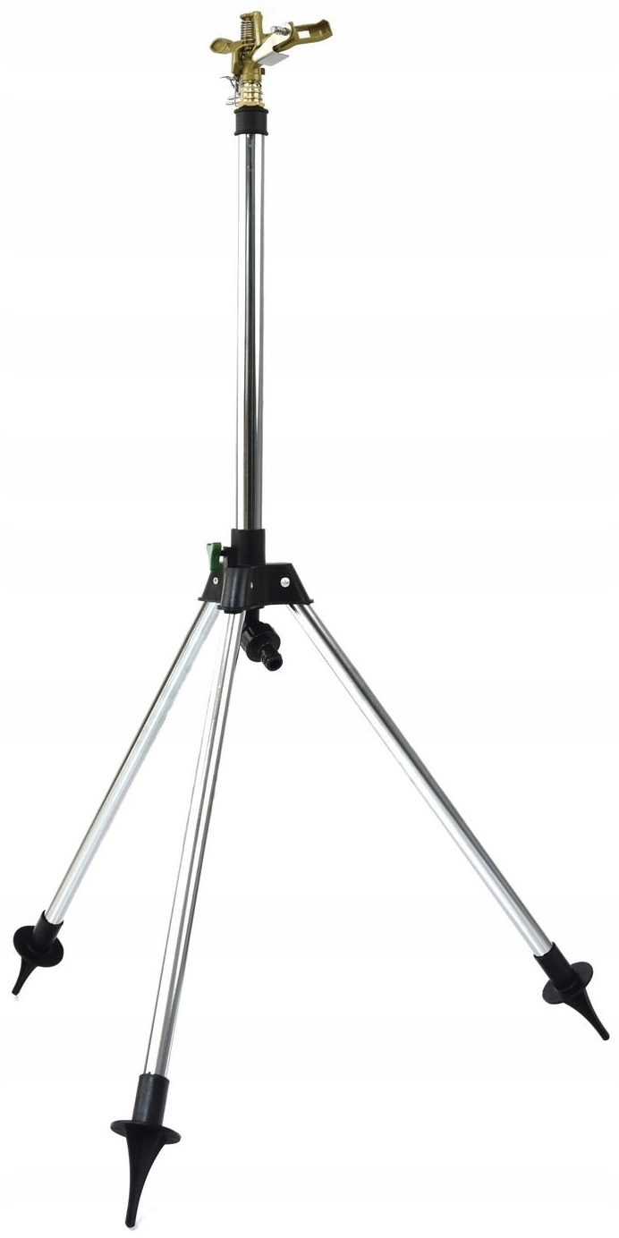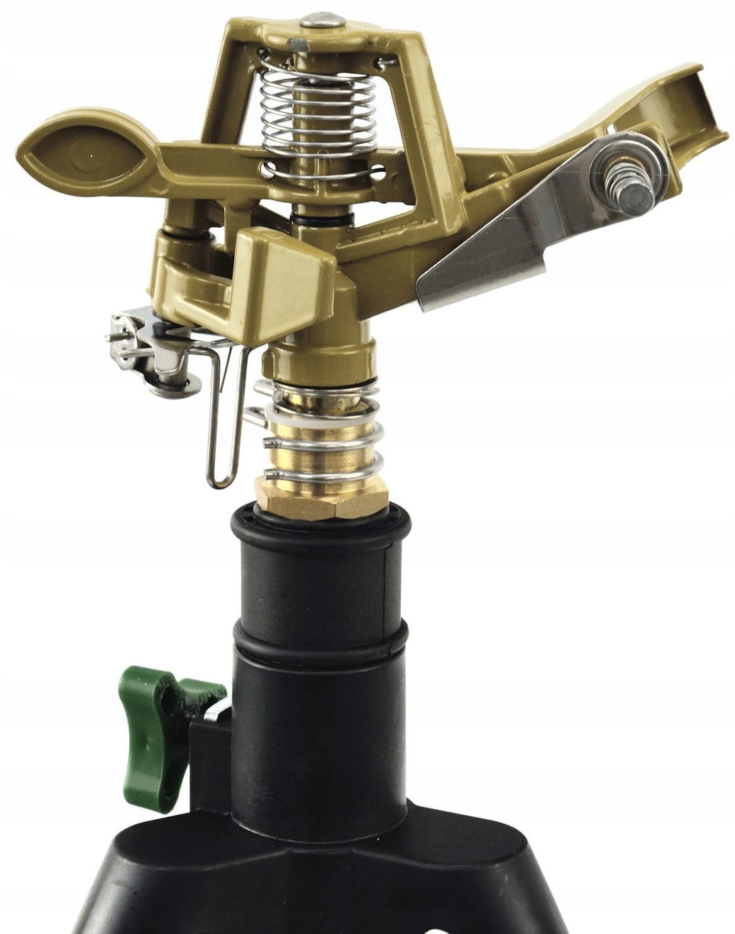 - Суцільний пульсуючий спринклер, повністю виготовлений з алюмінію, сталі та латуні. Встановлюється на підставці з регульованою висотою від 57 см до 90 см.