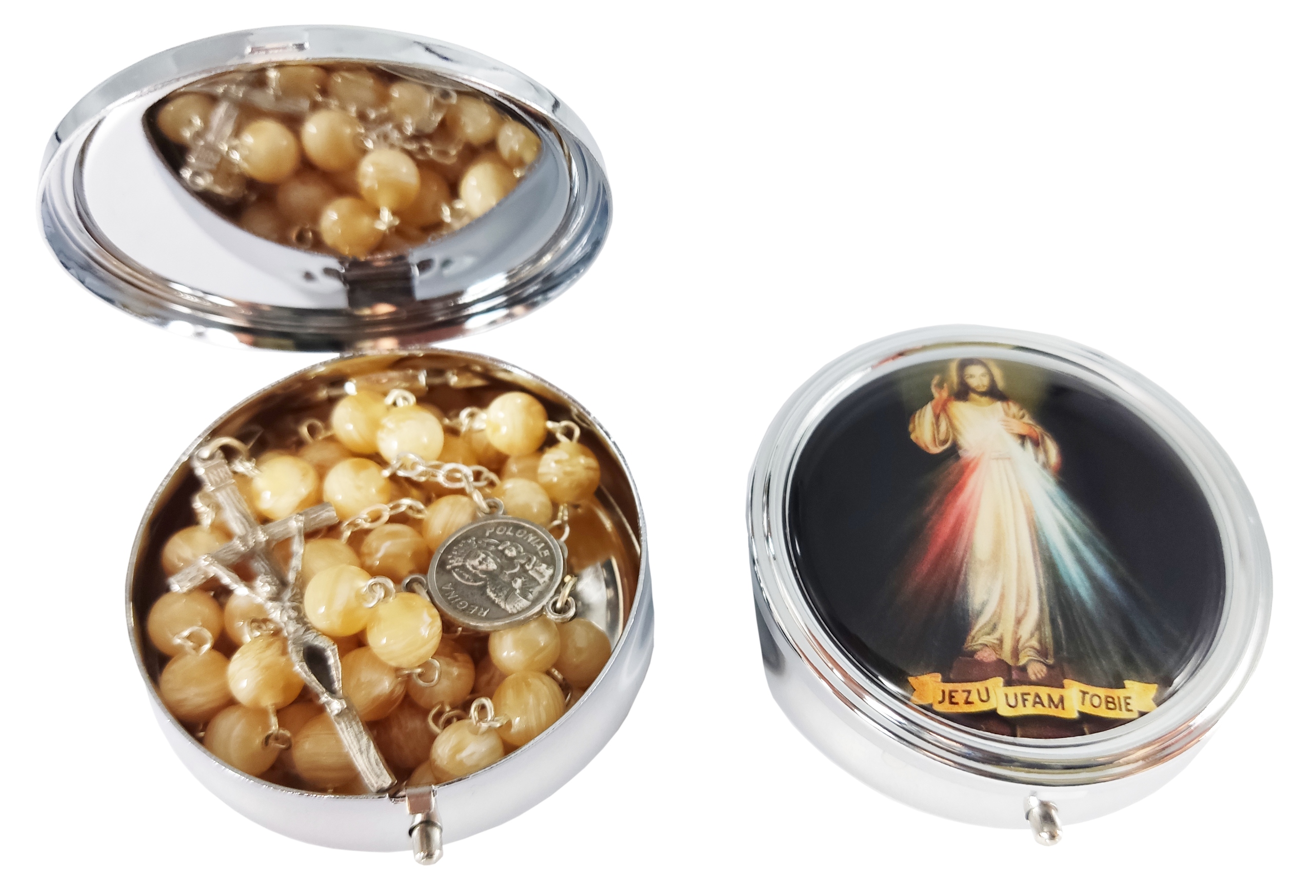 very nicely made Silver metal box with the image of Jesus (Jesus I trust in You)