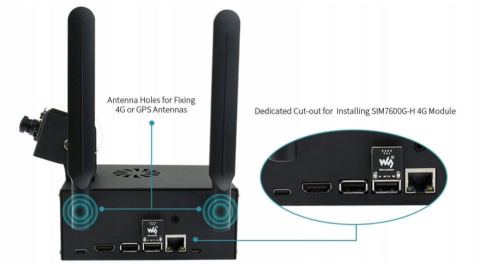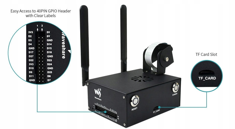 Дуже міцний корпус із отворами для всіх портів Jetson Nano та рухомим кріпленням для антени.