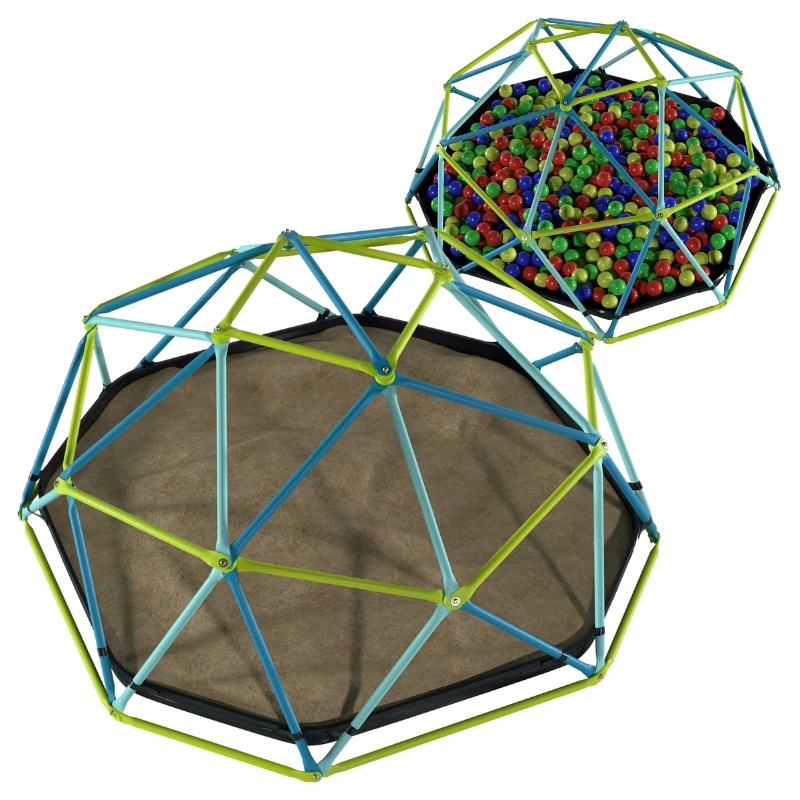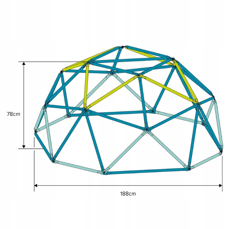 купольні іграшки з діаметром 1,9 м та висотою 78 см - це суцільна, стабільна конструкція, яка заохочує руху та спільну забаву. Він був створений для дітей віком від 3 років і витримує навантаження до 50 кг на користувача .