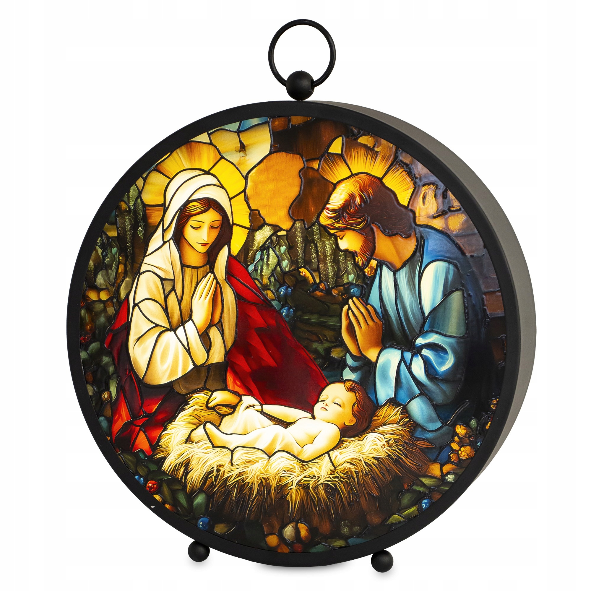 Цей металевий світлодіодний вітражний ліхтар із зображенням Святого Сімейства є не тільки прекрасним джерелом світла, а й унікальним прикраса, яка стане символічним акцентом Вашого дому, особливо під час свят.