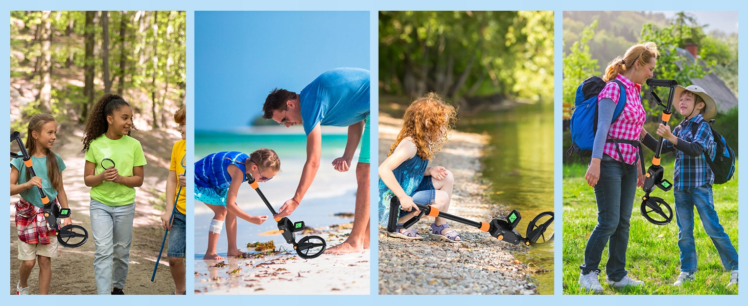 🪙 Металевий детектор має високу чутливість. Ви можете насолоджуватися пошуком скарбів у свіжому повітрі у всіх місцях ( сади, парки, пляжі та ліси тощо. . Проста робота дозволить дітям легко почати пошук металу. Легка та складна пошукова котушка призначена лише для проїзду та зовнішніх заходів.