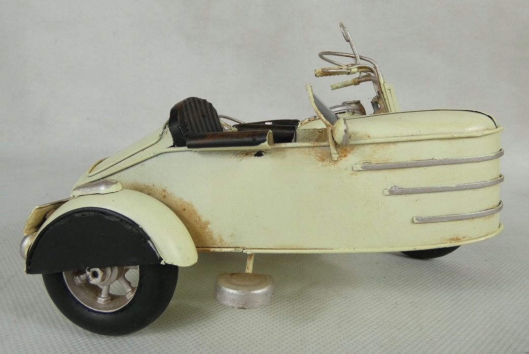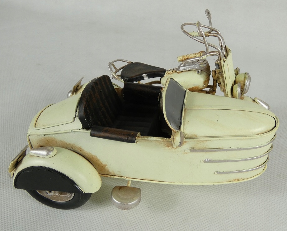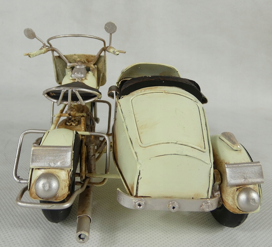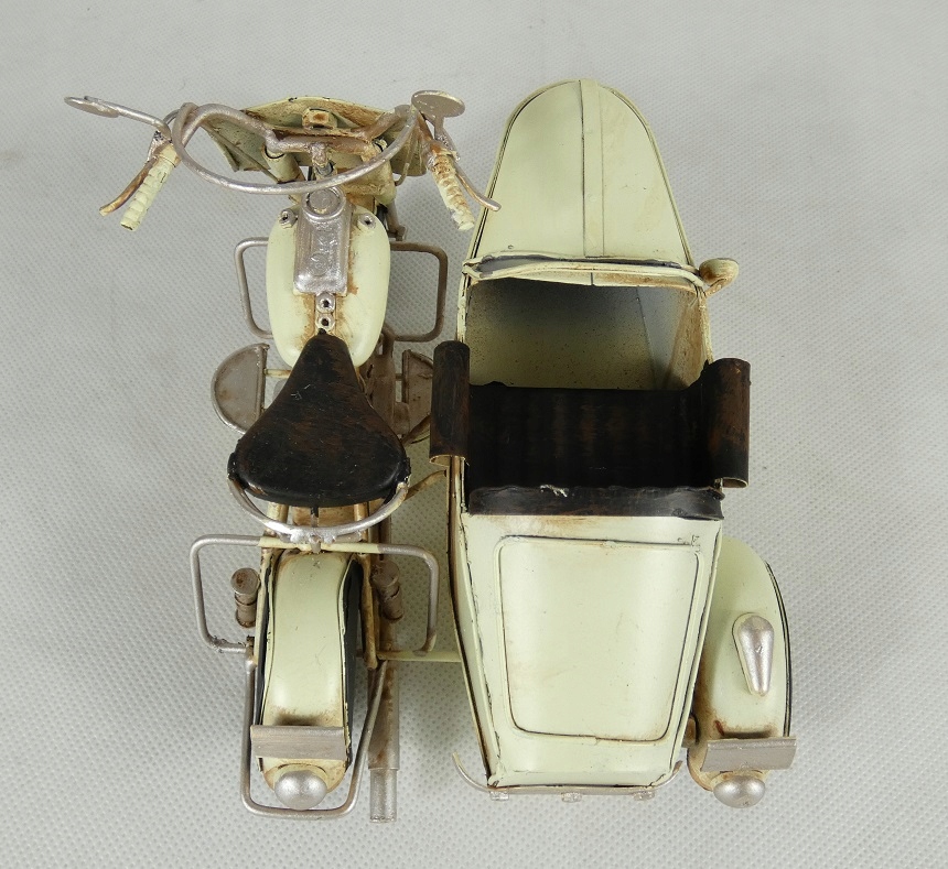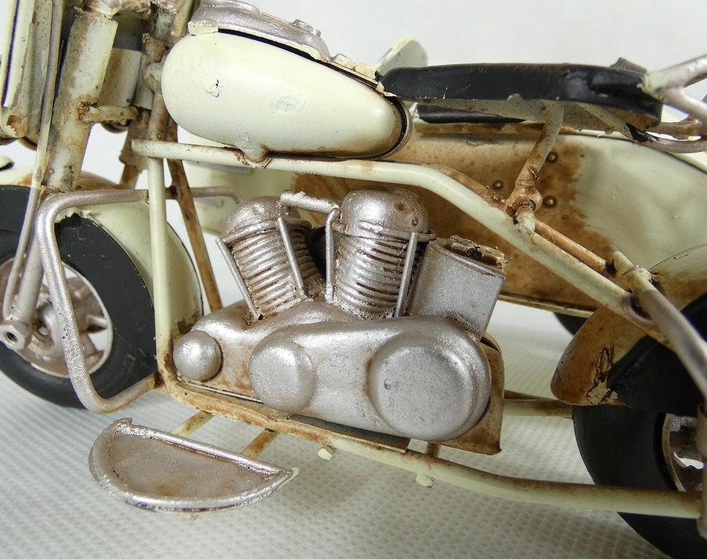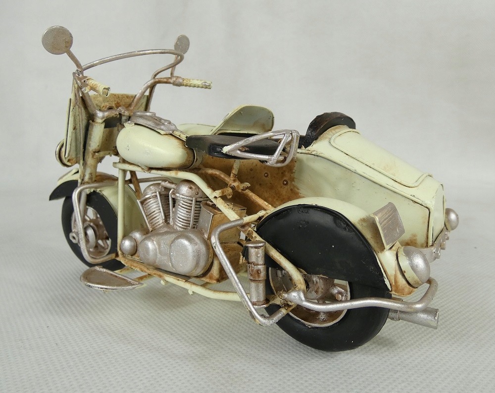 Металевий МОТОЦИКЛ з корзиною, кремовий РЕТРО мототранспорт