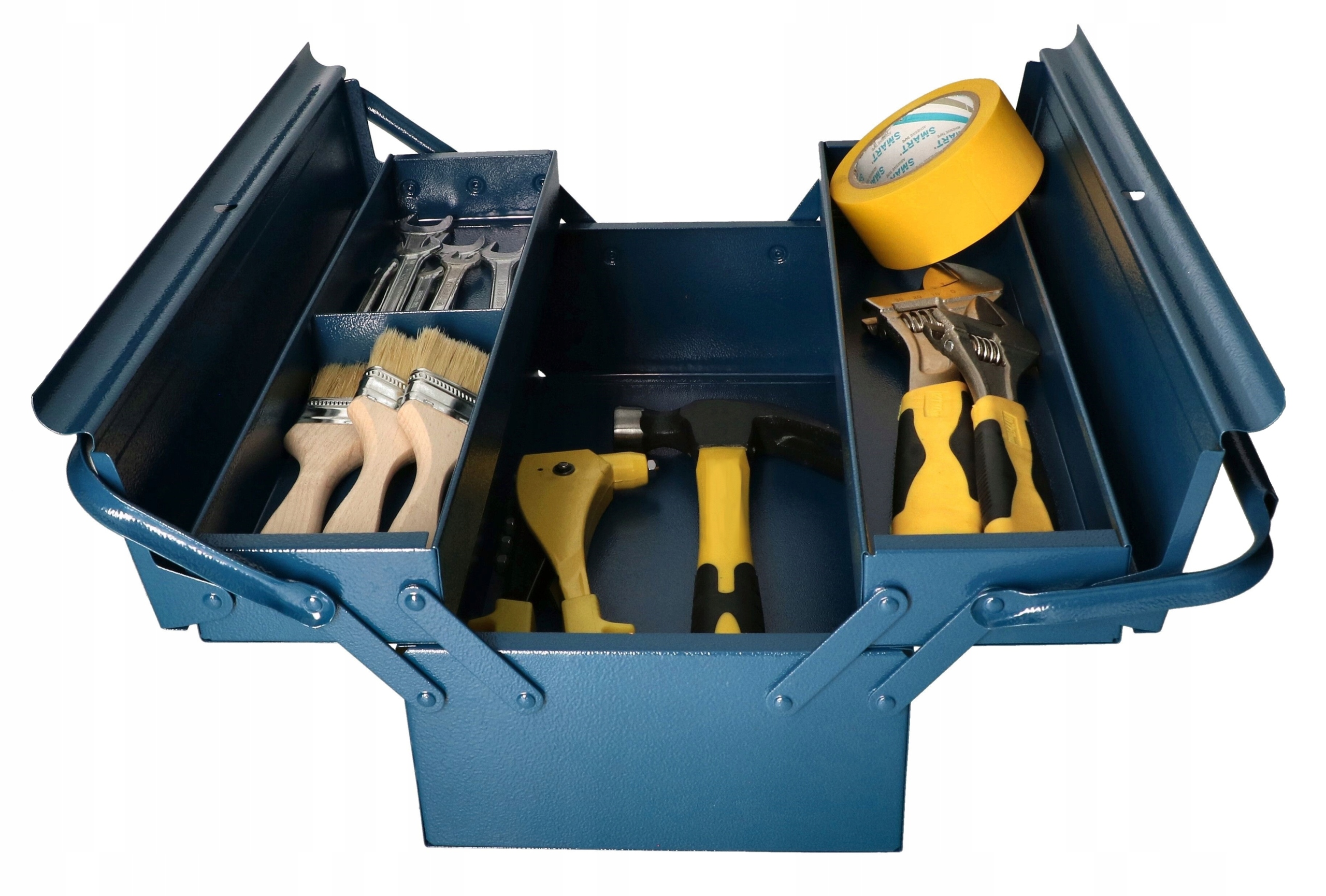 Металева коробка інструментів - це практичний аксесуар для зберігання інструментів, які полегшать обслуговування порядку. Продукт буде корисним як для професіоналів - механіки, так і електриків, а також людей, які займаються хобі -поводженням.