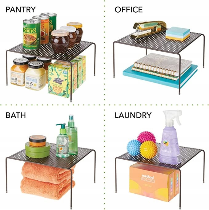 - СТАБІЛЬНА КОНСТРУКЦІЯ: полиця виготовлена з міцного металу, який має тривалий термін служби. Ця полиця також має гнучкі гумові ніжки, які тримають її на місці, не ковзаючи у вашій шафі.