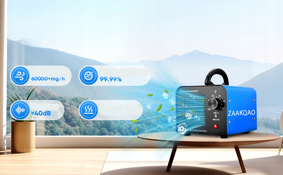 ✅ Більше потужності - генератор має максимальну вихідну потужність 60000 мг/год, що підходить для простору 300㎡. Виробництво озону більш стабільне, ефективність на 50% вища, ніж у звичайної озонової машини.