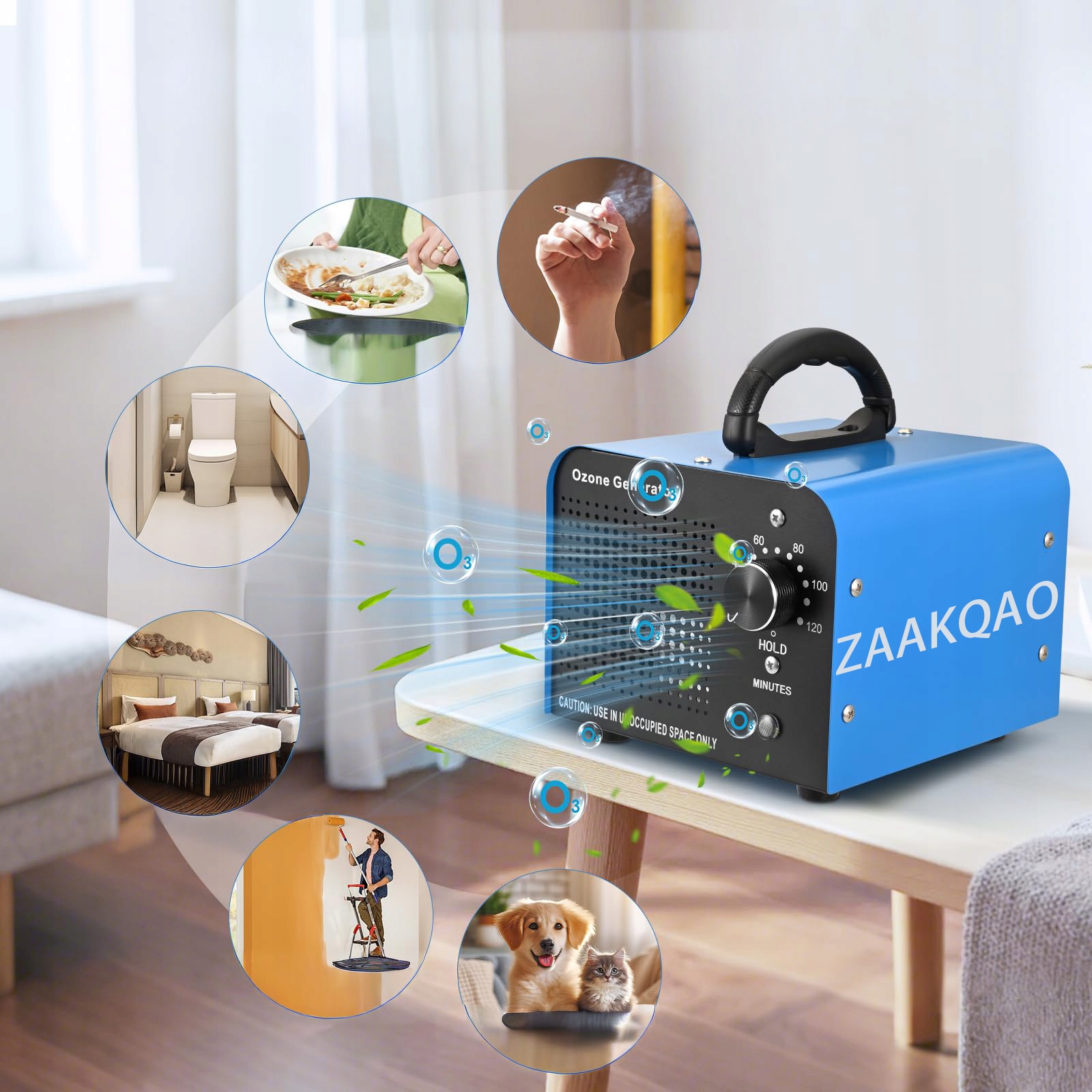 Точний перемикач часу (0-120 хв + режим HOLD) дозволяє встановити час роботи та безпечно покинути приміщення під час озонування.