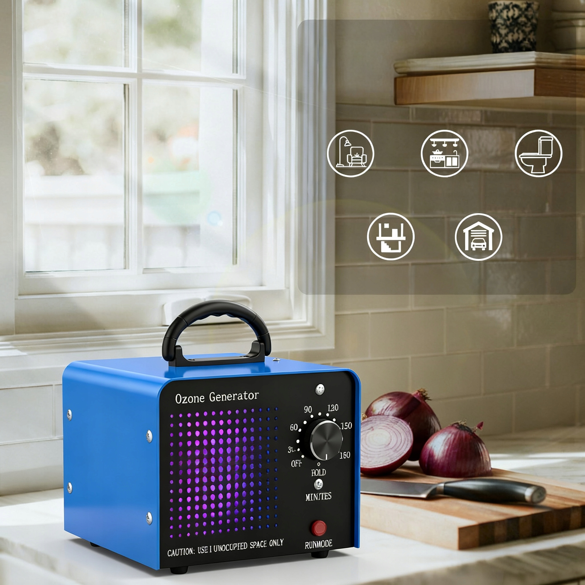 Точний таймер (0-120 хв + режим HOLD) дозволяє встановити робочий час і безпечно покинути приміщення під час озонування.