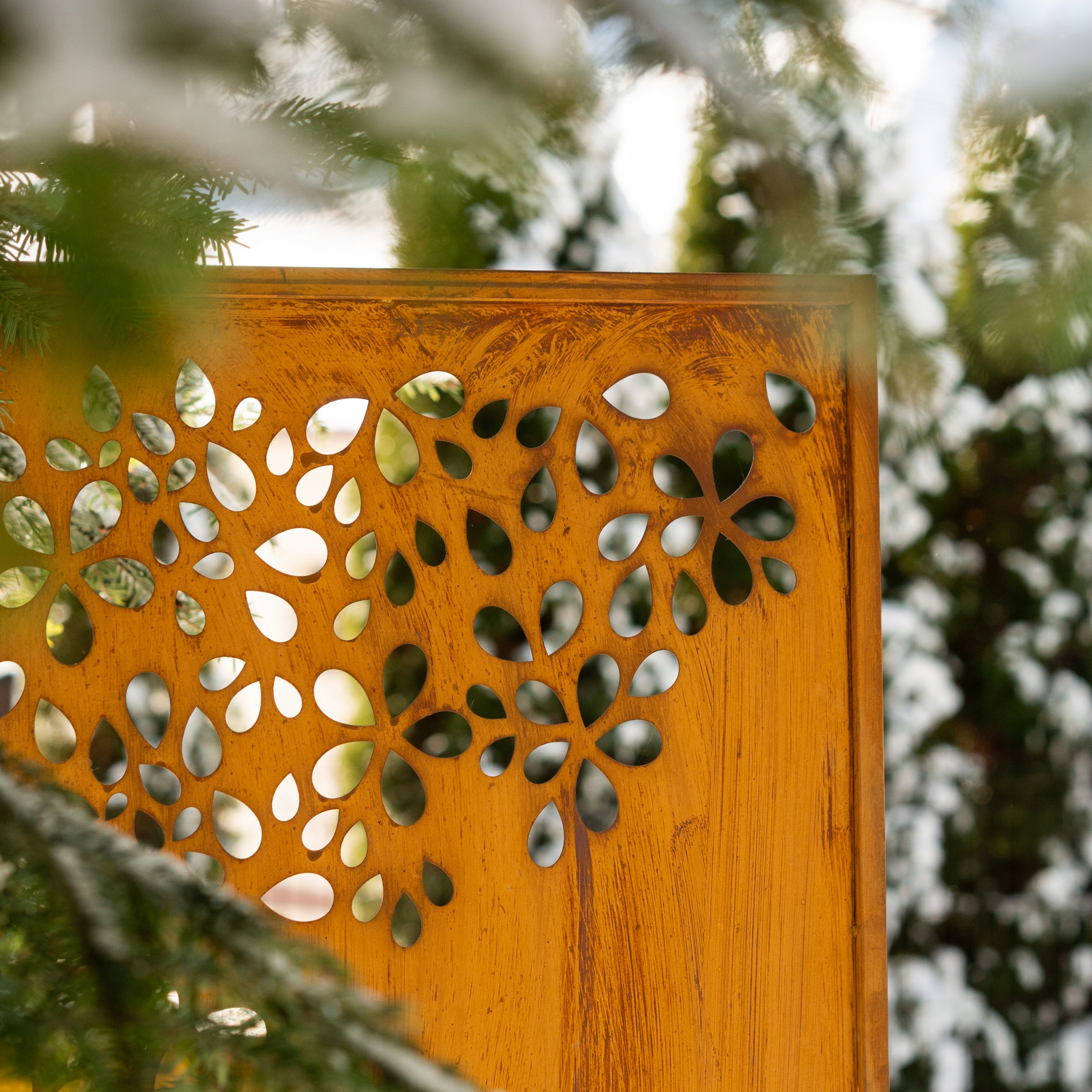 Металева кришка екрану Садова панель Квіти Іржавий ефект Кортена
