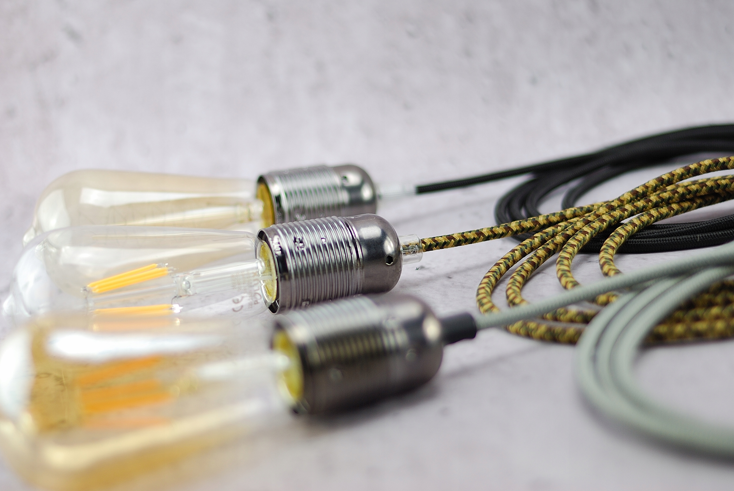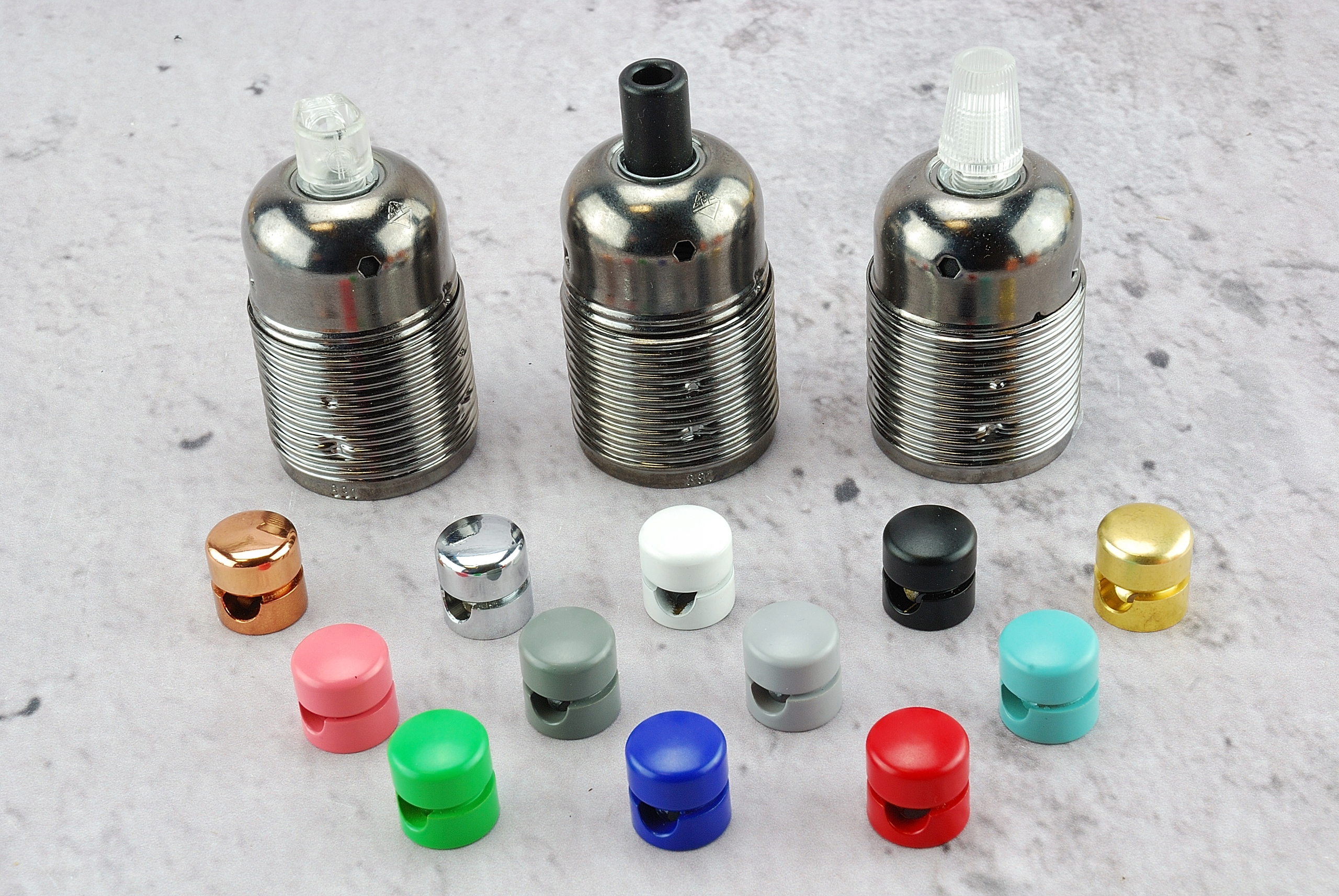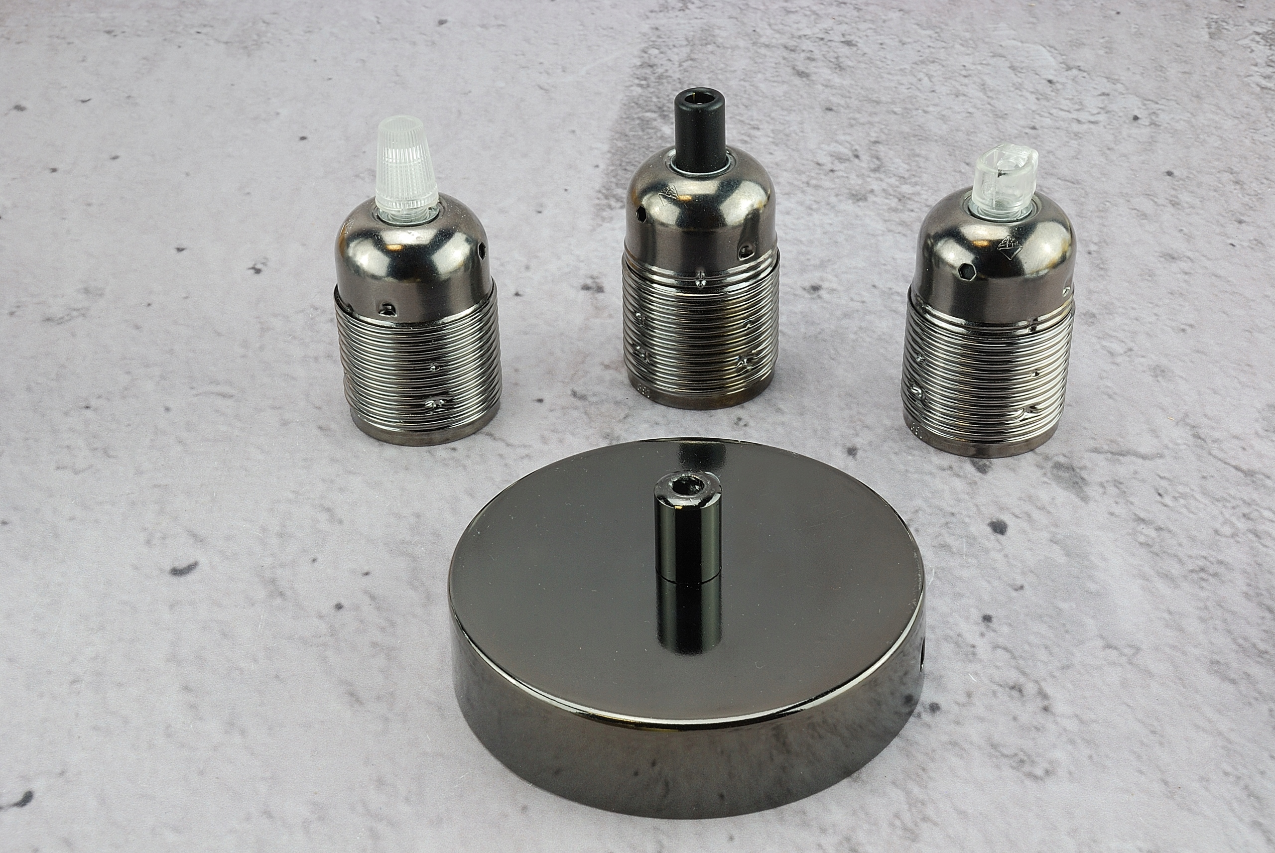 Патрон E27 - метал, латунь (у центрі - вставка для пригвинчування кабелів і стабілізатора кабелю).