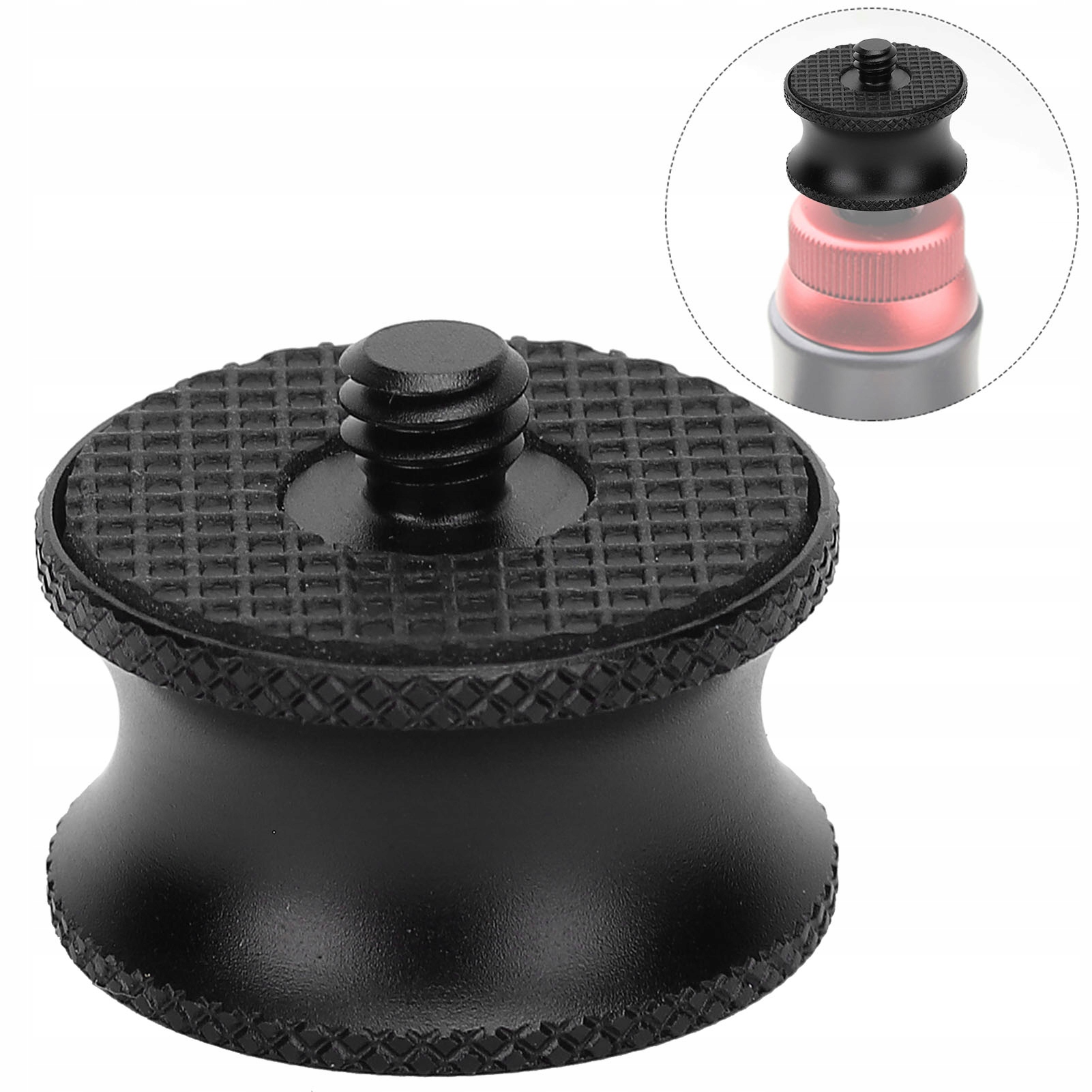 - 1/4" внутрішній до перехідного гвинта 3/8" чоловічий Розмір: Діаметр: Прибл. 28 мм/1,10 дюйма; Висота гвинта: приблизно 7 мм/0,28 дюйма; Загальна висота: прибл. 21 мм/0,83 дюйма