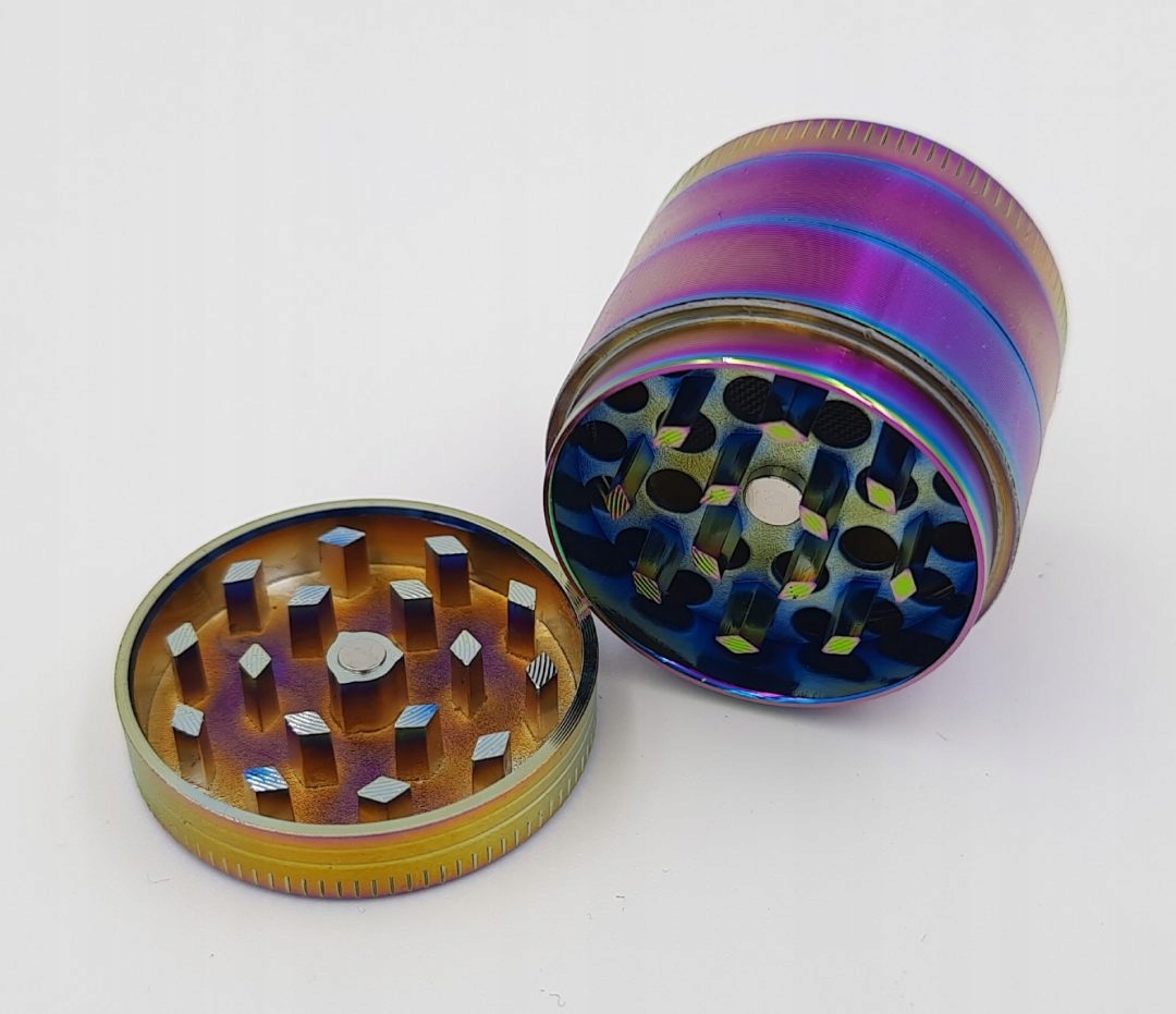Пропозиція поширюється на металевий м’ясоруб для тютюну чи трав. Металеві зуби розчавлять будь-які великі шматки. Верхня частина кріпиться за допомогою магніту. Всередині м'ясорубки є ситечко. Нижня частина, куди потрапляє подрібнена трава, відкручується. Висота жорна 2,8 см, діаметр 3 см. Він маленький, тому його можна покласти навіть у кишеню.