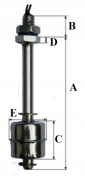 Поплавковий вимикач (вимикач). Датчик зазвичай монтується в бічній стінці резервуара. Зонд може контролювати верхній і нижній рівні.