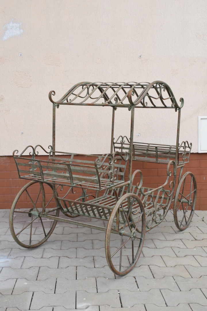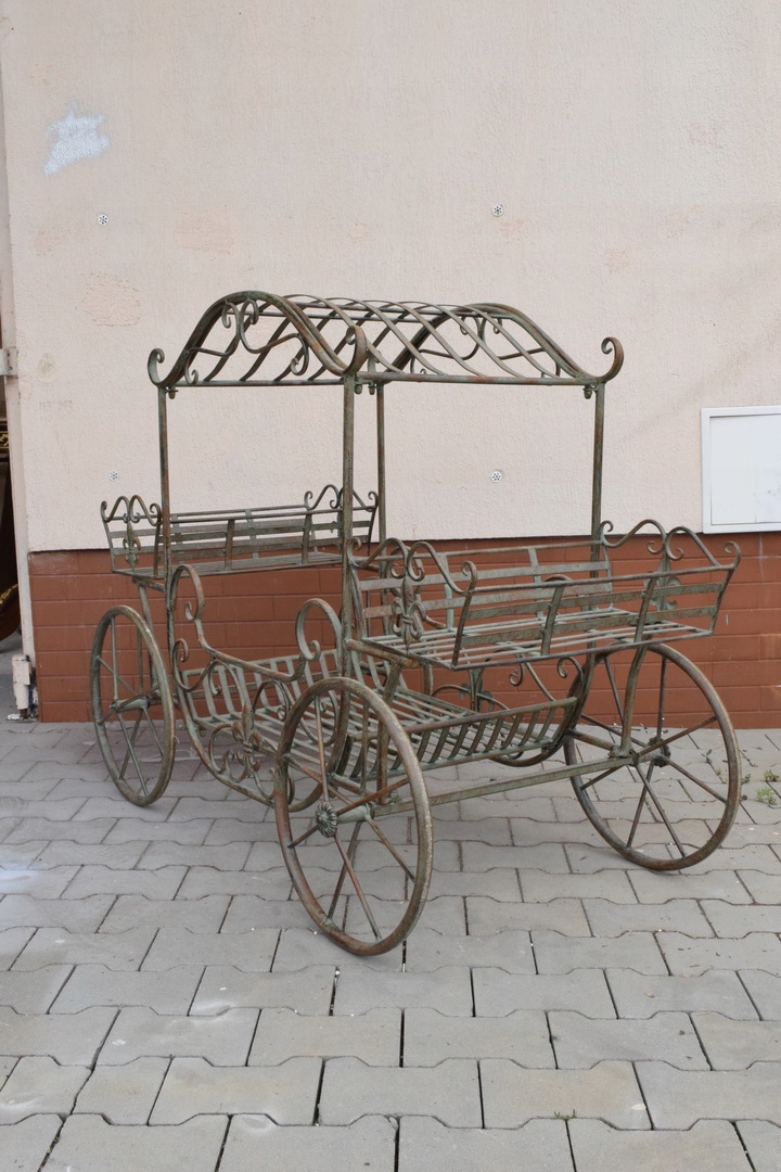 Привіт, сьогодні я хотів би запропонувати вам гарну нову стару металеву садову коляску. Каретку можна вести, колеса обертаються.