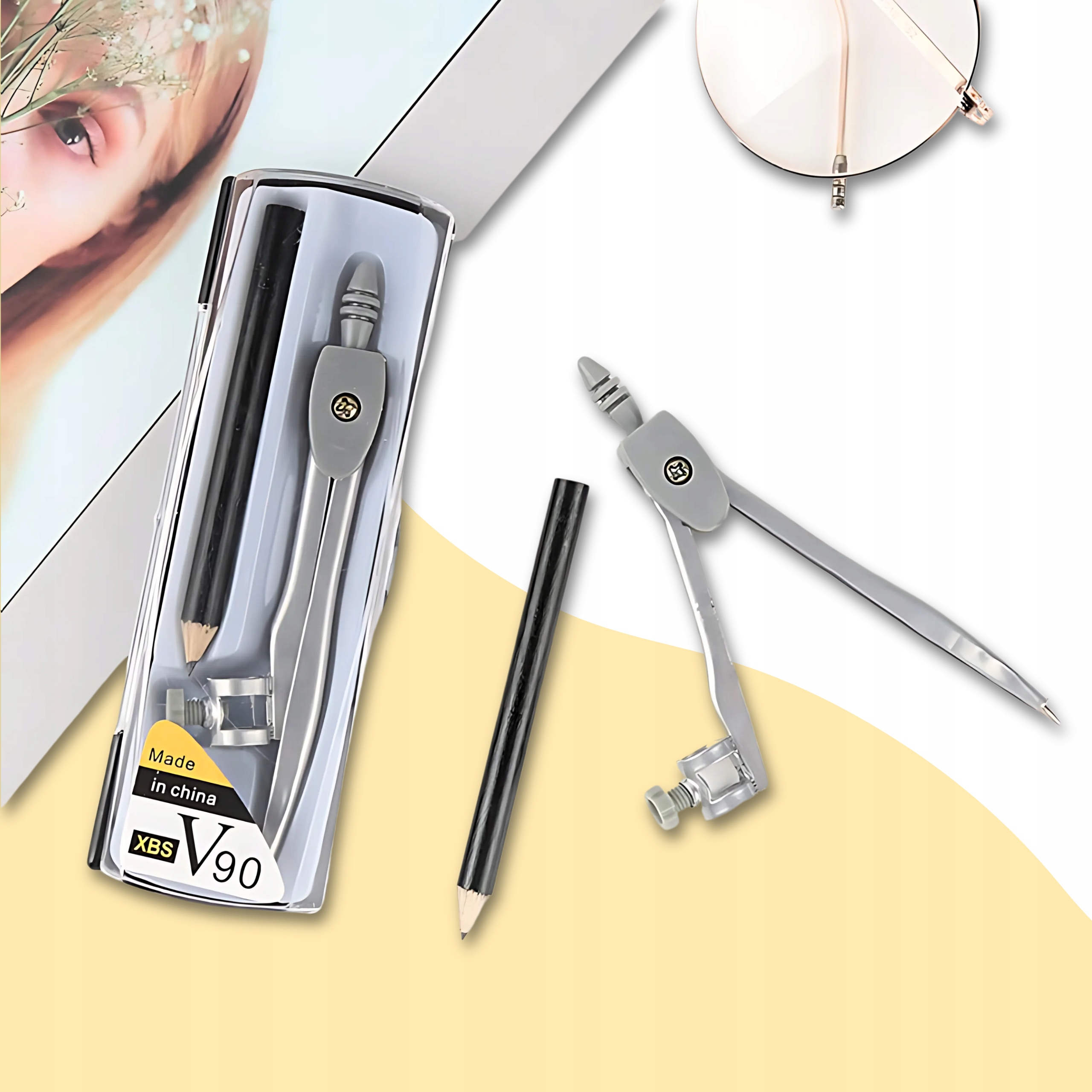 Металевий шкільний компас із знімним набором геометричної школи олівця