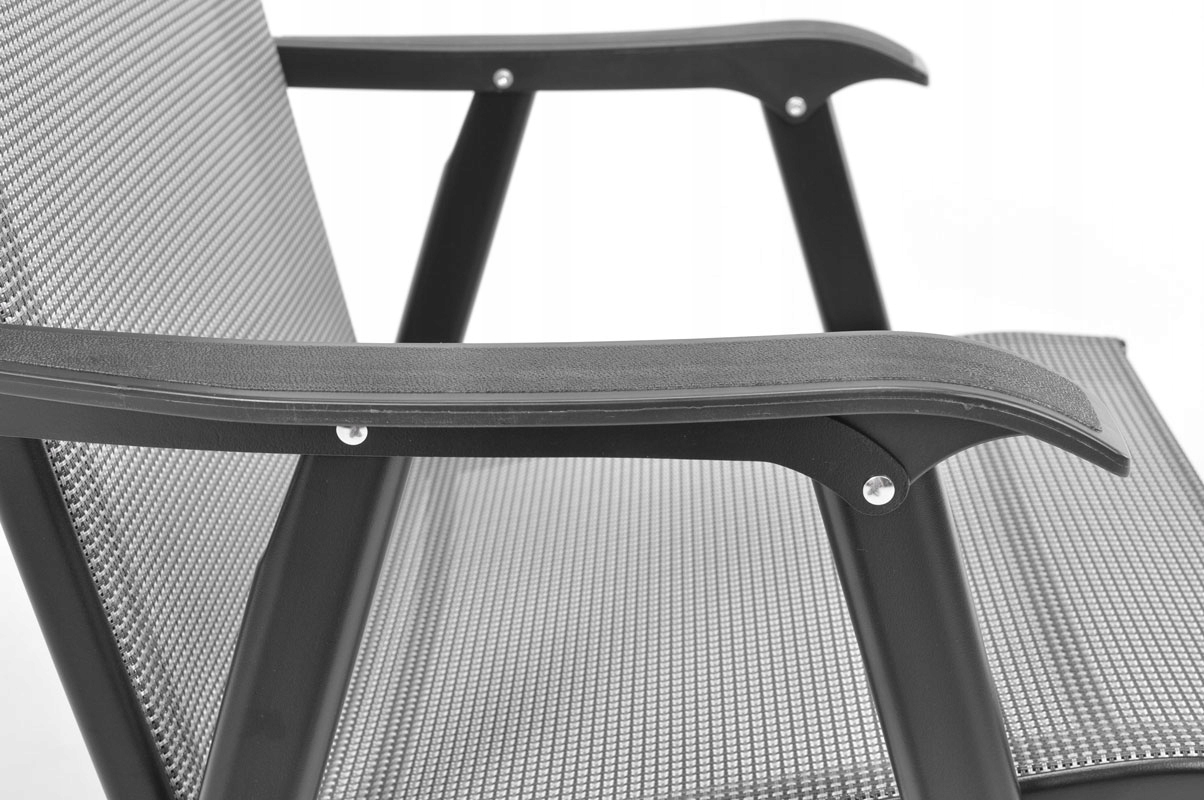 Він був виготовлений з високоякісної міцної та твердої сталі. Матеріал сидіння - це текстілен, який ідеально підходить для садових меблів, оскільки він водонепроникний і простий у чистці.