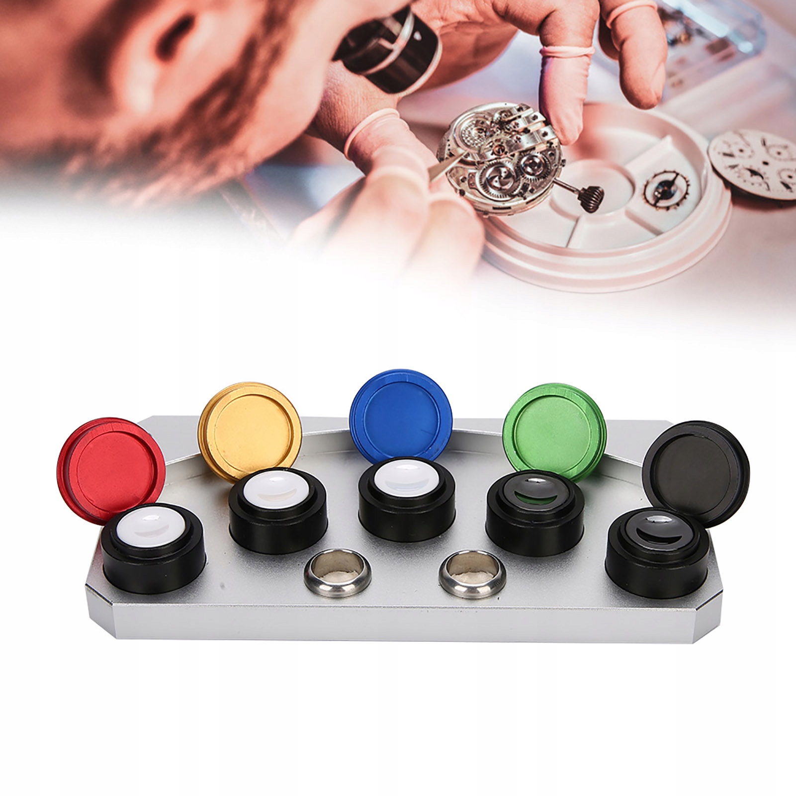 1. Високоякісна нафтова стійка, спеціально розроблена для зберігання олії або мастила для годинників. Виготовлений з високоякісного металевого матеріалу, стійкого до впливу та надійного у використанні. Кожна чашка оснащена кришкою, що захищає від пилу та домішок. Розроблений з 5-частинною ємністю для годинників, легким для очищення та багаторазового використання, приємним інструментом для годинників. Зручно для застосування мастила для годинників, простих у використанні, придатних для годинників.
