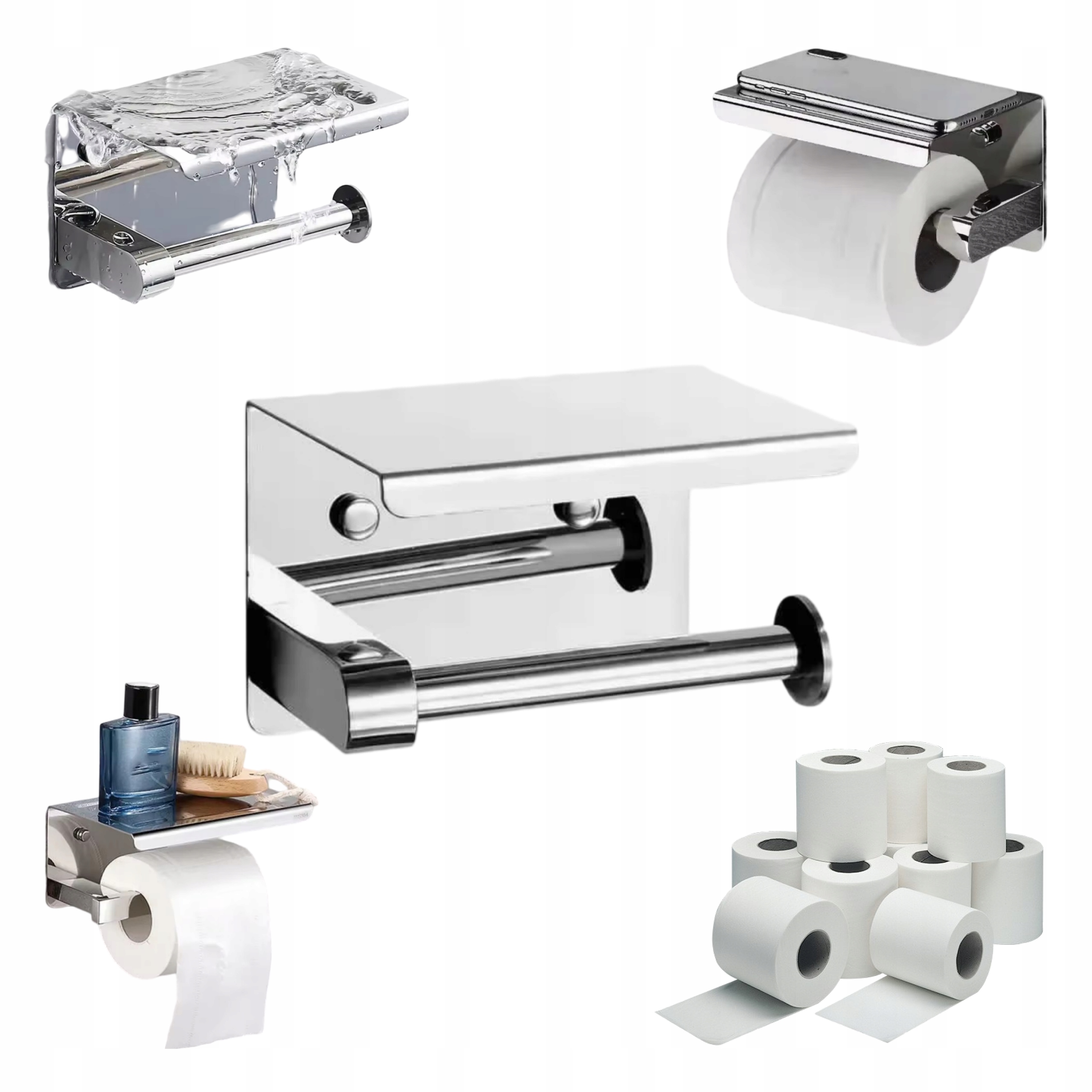 Металевий тримач туалетного паперу з хромованою самостійною полицею
