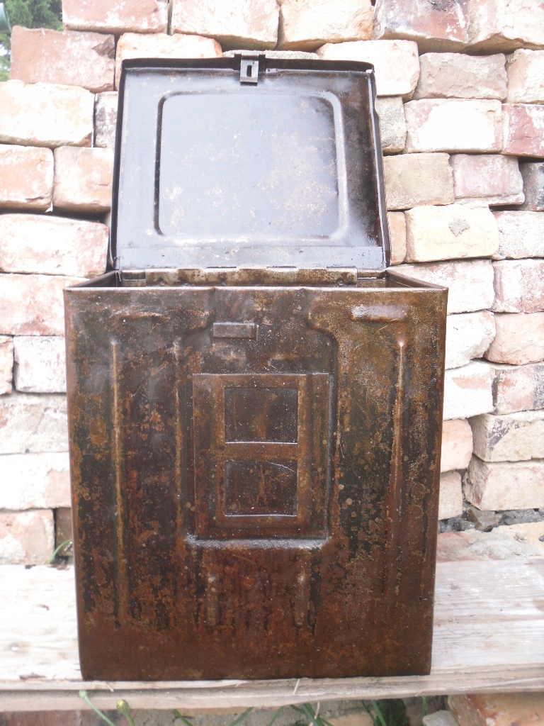 Ласкаво просимо на мій аукціон. На аукціонах я зазвичай пропоную вам речі часів Польської Народної Республіки. На цьому аукціоні я пропоную ОРИГІНАЛЬНУ коробку, металевий контейнер, коробку, упаковку іншої форми, ніж ті, які зазвичай зустрічаються. Коробка висока, ціла, НЕ загнута, тільки кришка трохи загнута по краю і щоб зачепити її за гачок потрібно злегка натиснути, а одягнувши вона тримається за гачок і робить не відкритий, в залежності від ваги. Коробка має нормальні ознаки використання та має іржаве покриття, очищена та консервована маслом як зсередини, так і зовні. Тепер ви можете використовувати коробку як контейнер для зберігання всього, що забажаєте. Рухомі ручки. Найкраще подивіться фото.