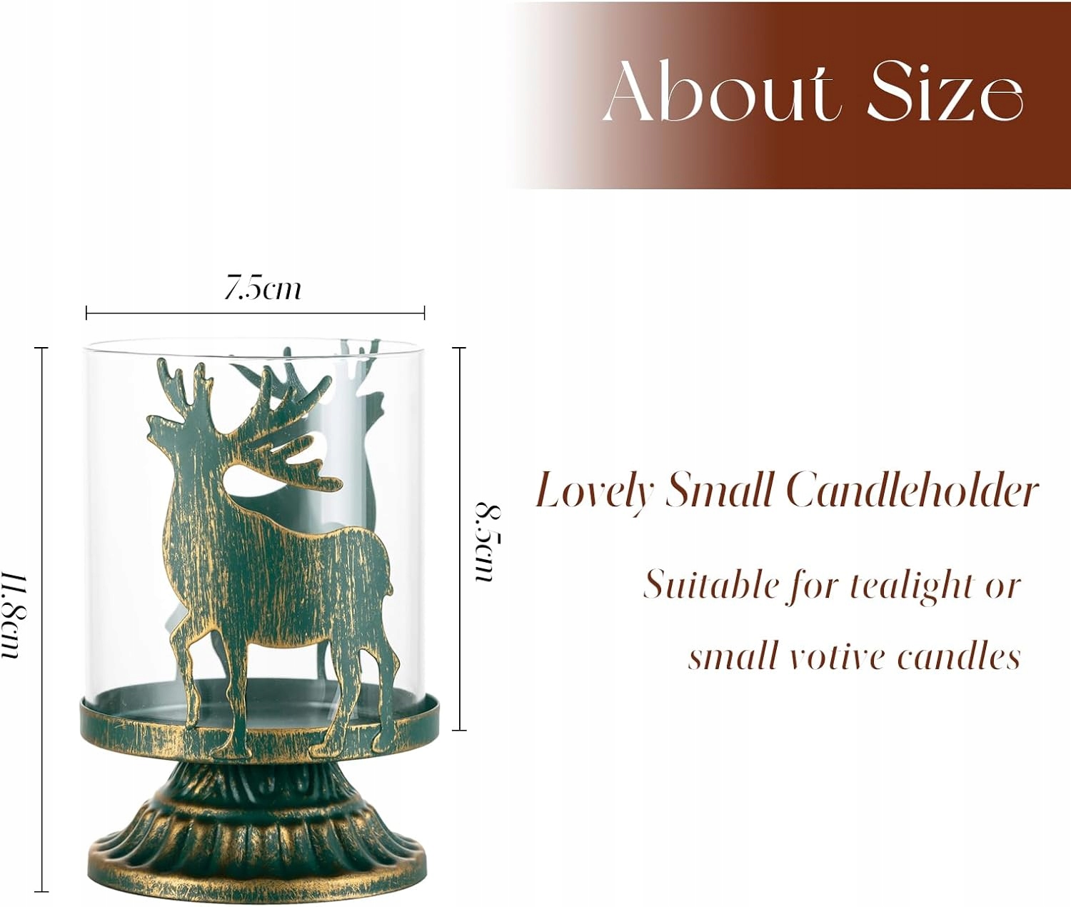 Створіть унікальну атмосферу у вашому домі завдяки елегантним свічником . Зроблений з високоякісного металу в зеленому кольорі із золотими потертоми та прикрашеними ніжним візерунком оленів , вони стануть прекрасним Різдвом та роком -об'єктом.