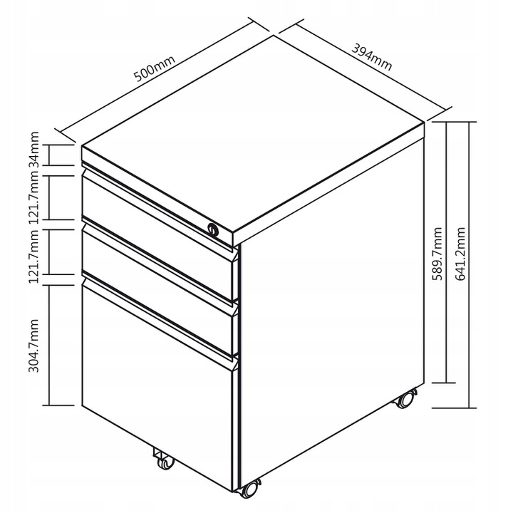 Практичний замок закриває всі 3 шухляди одночасно, забезпечуючи безпека збережених документів.