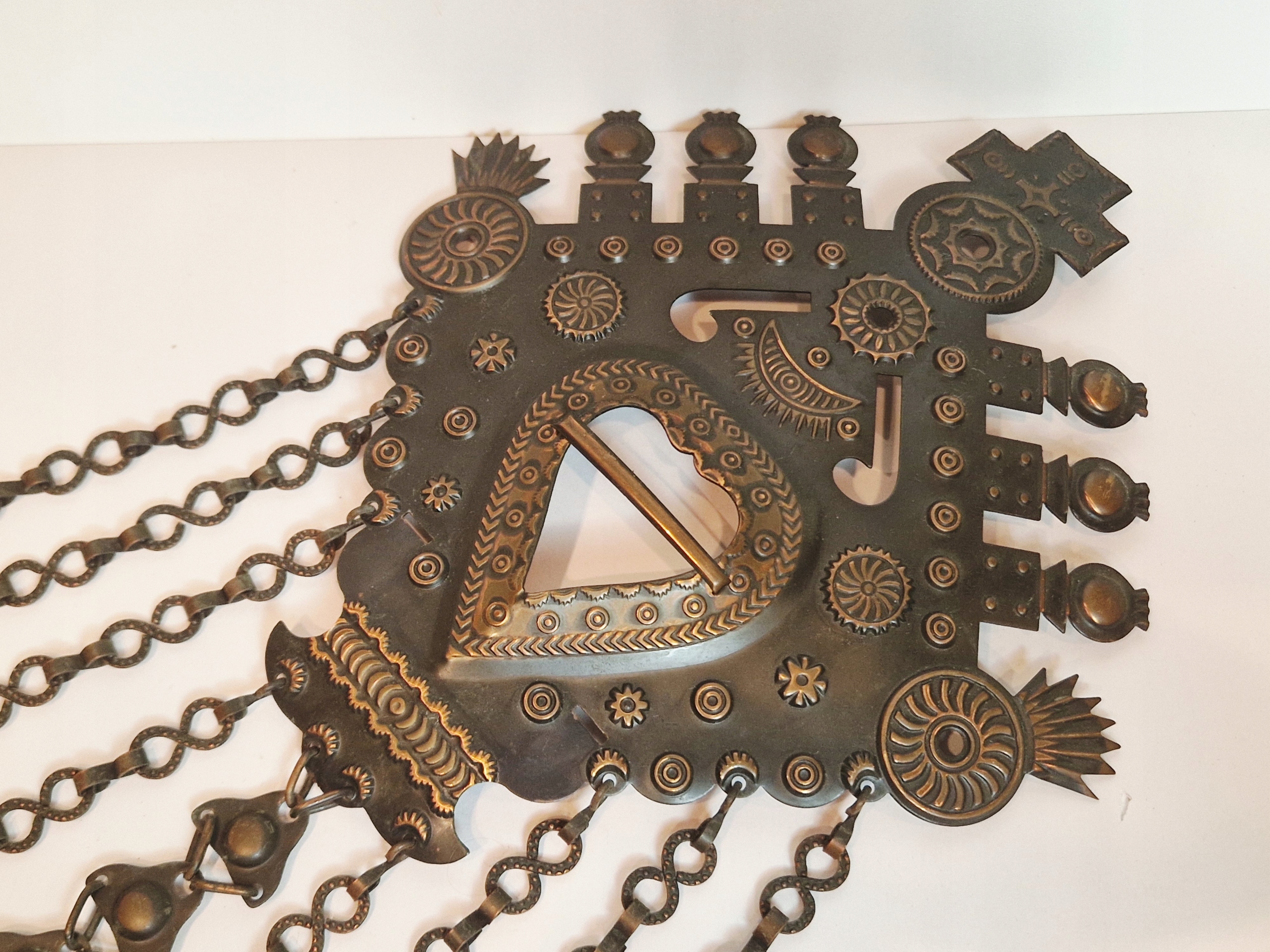 "Традиційні манжети з високогір'я , що датуються готичними прототипами, орнаментовані сонячними колесами, півмісяцем, зірками та зооморфними та геральдичними мотивами, особливо знаковою головою хижацької птиці, яка завжди бачиться з профілю".