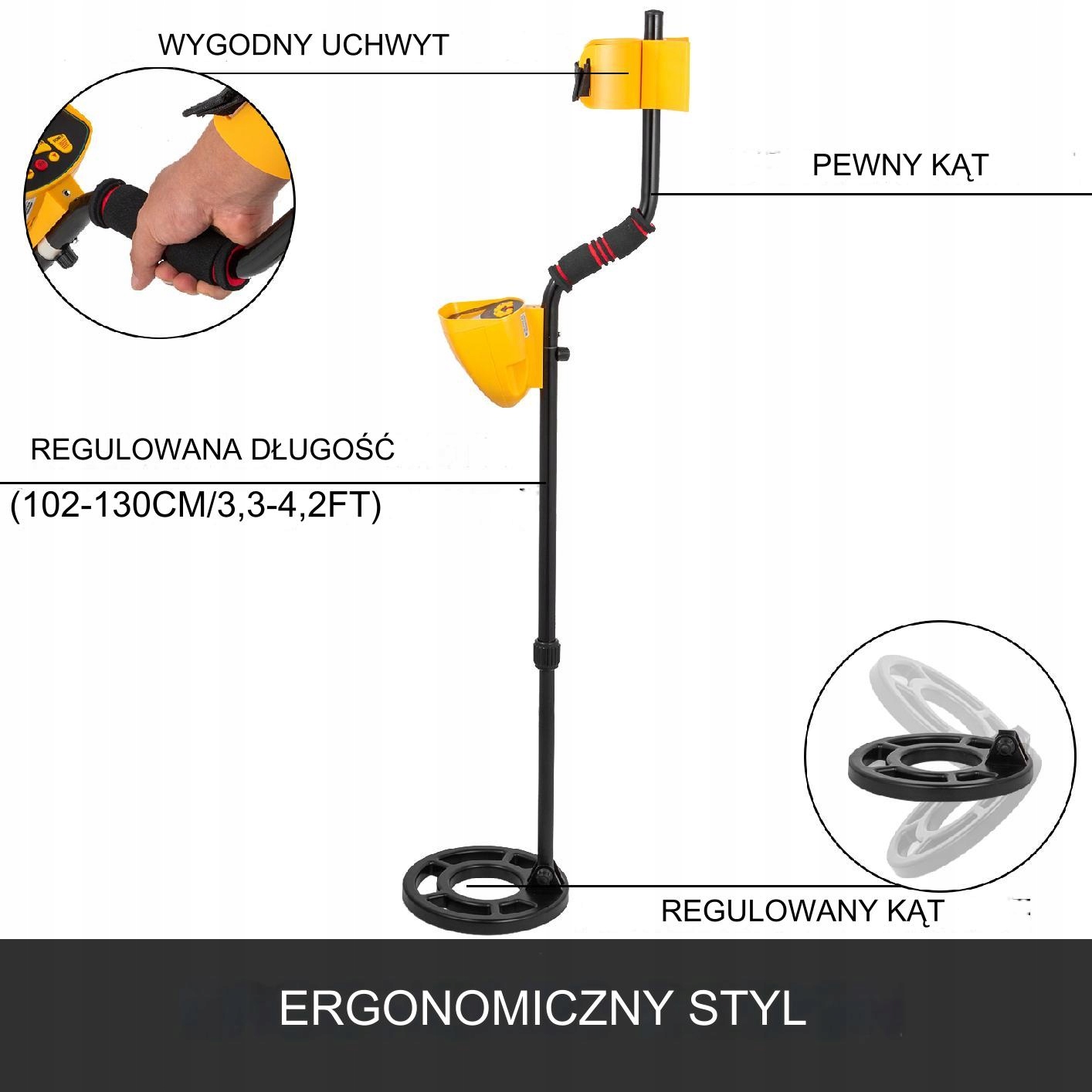 Металошукач має конструкцію підлокітника, зручний хват. Регульований міст: 102-130 см. Для людей різного зросту.