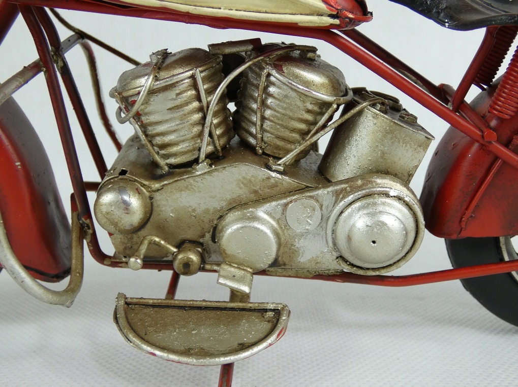 Metalowy MOTOR czerwony RETRO pojazd 28 cm motocykl