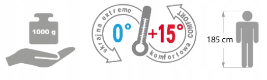 Існують ще два вражаючих значення спальних мішків, а саме температура верхньої межі комфорту (T-max) і екстремальної температури (T-extreme). Перший зустрічається лише іноді і вказує на найвищу температуру, при якій чоловік стандартної комплекції може розраховувати на комфортний сон. Якщо це значення перевищено, йому може бути занадто тепло в спальному мішку, тому він, ймовірно, почне надмірно потіти. Друге значення, тобто екстремальна температура, може викликати захоплення, особливо в спальних мішках для мінусових температур. Однак вам точно не слід покладатися на нього під час покупки, оскільки він інформує нас, при якій температурі жінка стандартної статури може бути під загрозою переохолодження.