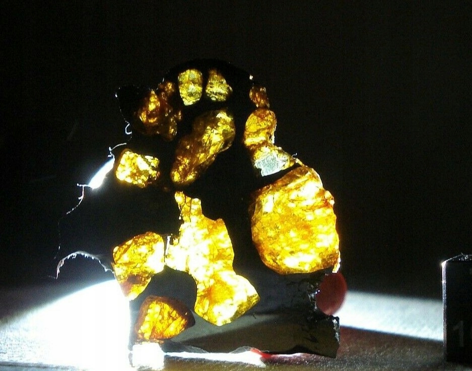 Високоякісні світлопроникні кристали золотого космічного олівіну.